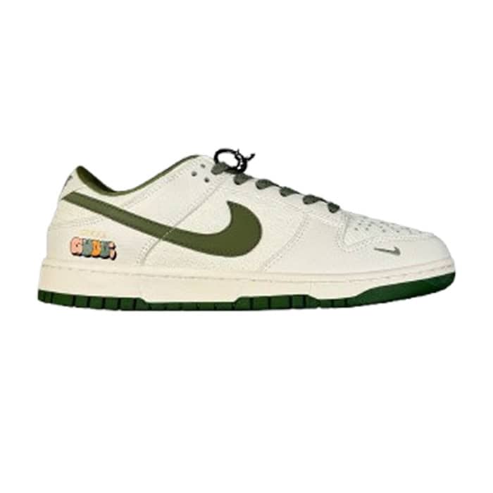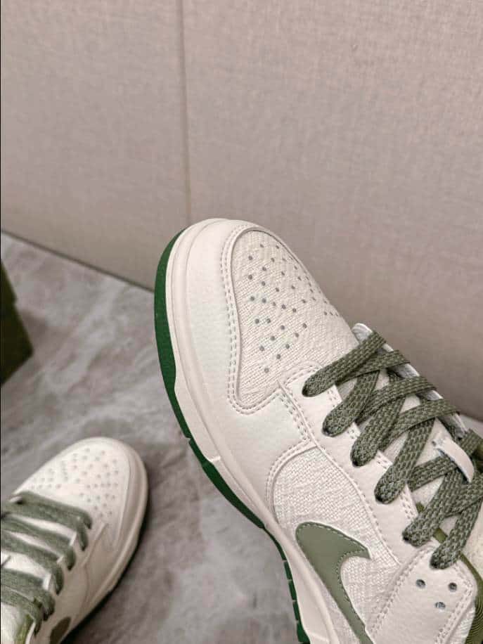 The Gucci Nike Dunk Low Green White Sneakers replica is a dynamic fusion of two iconic styles, combining Gucci’s luxury aesthetic with the sporty appeal of Nike’s Dunk silhouette. Featuring a fresh green and white color scheme, these sneakers exude modern sophistication while maintaining the comfort and versatility of the original design.