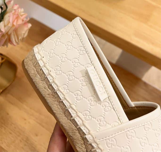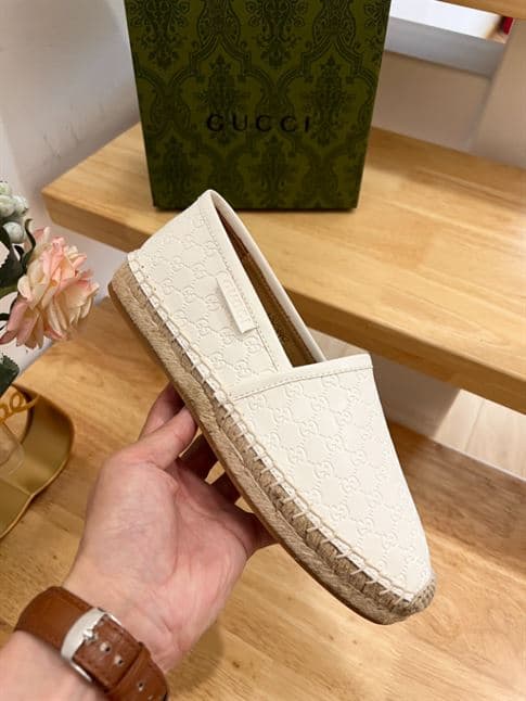 GUCCI PILAR LOGO-EMBOSSED LEATHER ESPADRILLES IN WHITE – GL030