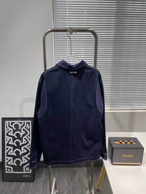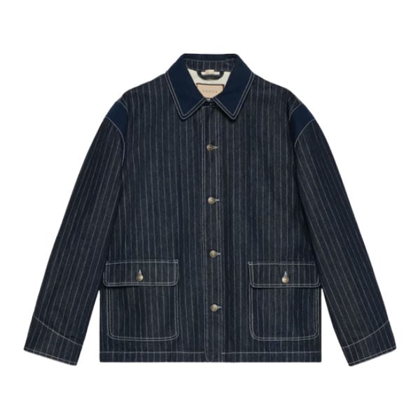 #GucciStyle#PinstripeDenimFashion#DesignerJacket#LuxuryApparel#FashionEssential