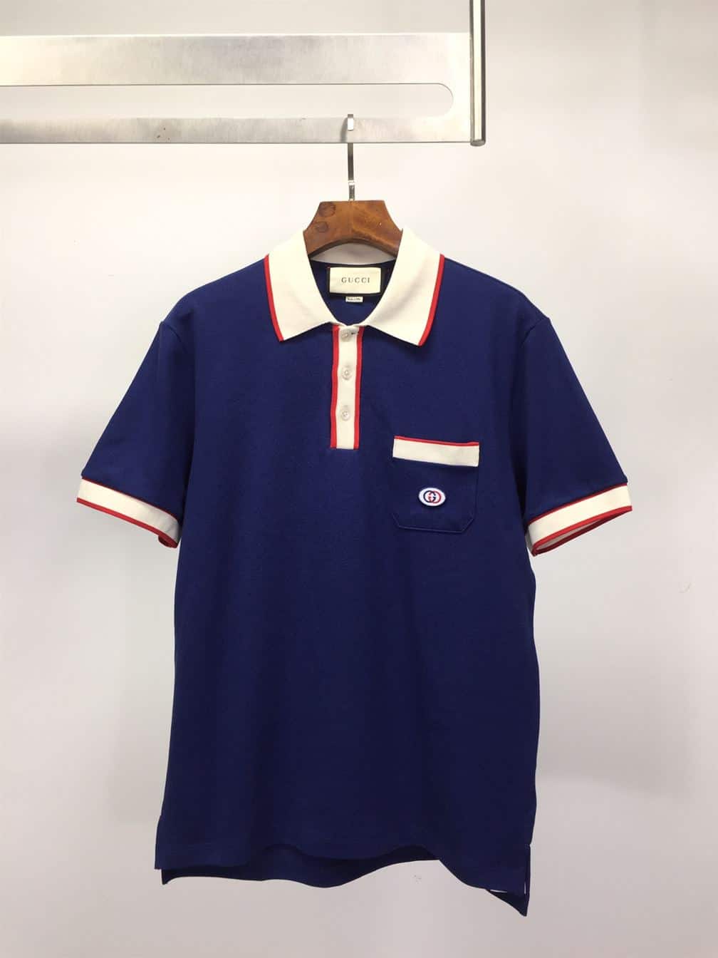 GUCCI POLO GG LOGO PATCH NAVY – GGS027