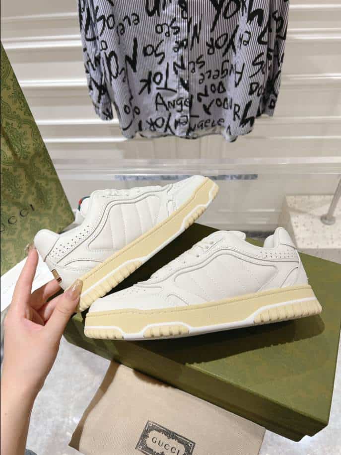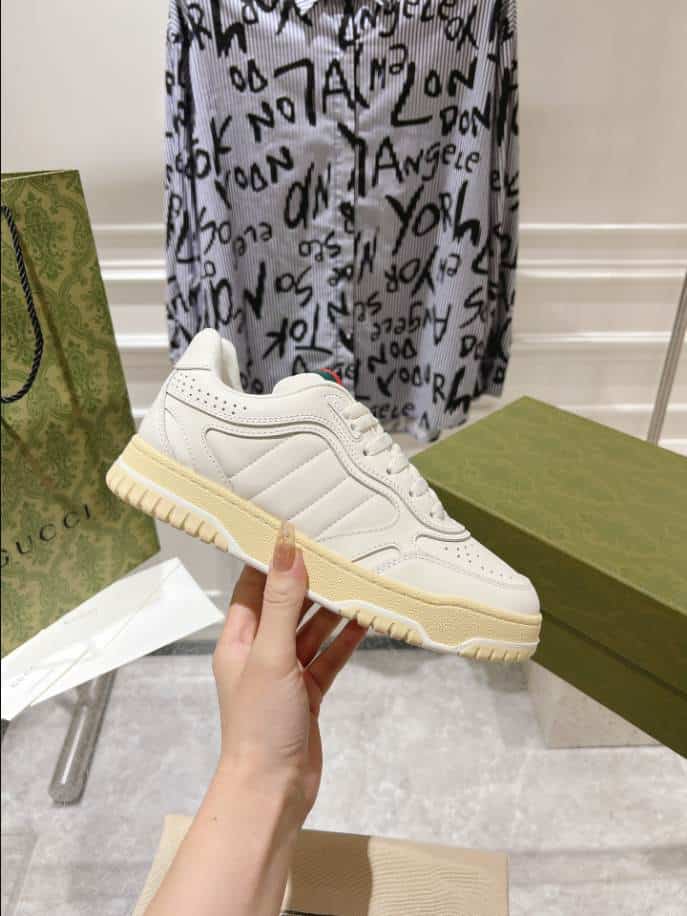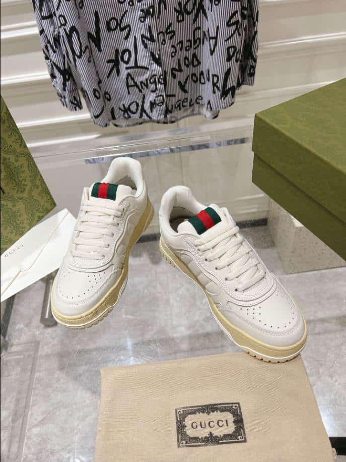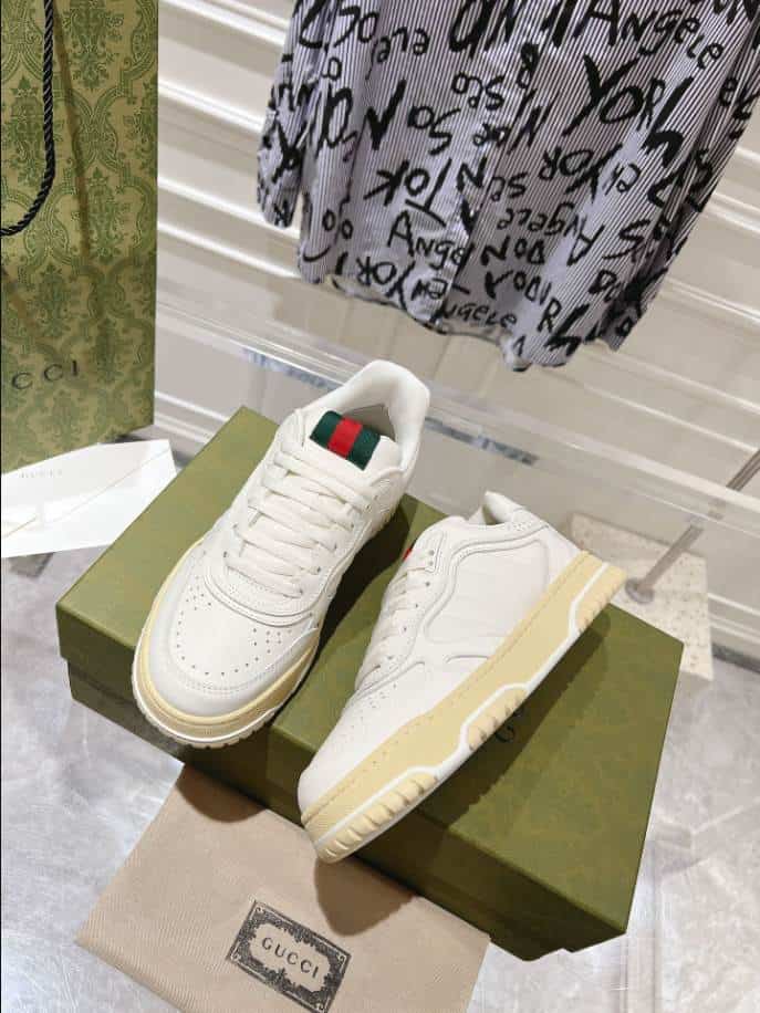 The Gucci Re-Web Trainer White Sneakers replica offers an affordable alternative for those who admire the sophisticated style of the original design. These replicas aim to replicate the clean, minimalist white leather silhouette. Accented by Gucci’s signature green and red web stripe on the sides. These replicas are a popular choice for fashion enthusiasts who want to capture the luxury aesthetic of Gucci sneakers without the premium price tag.