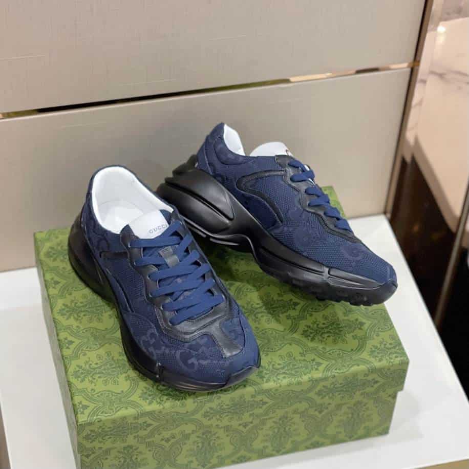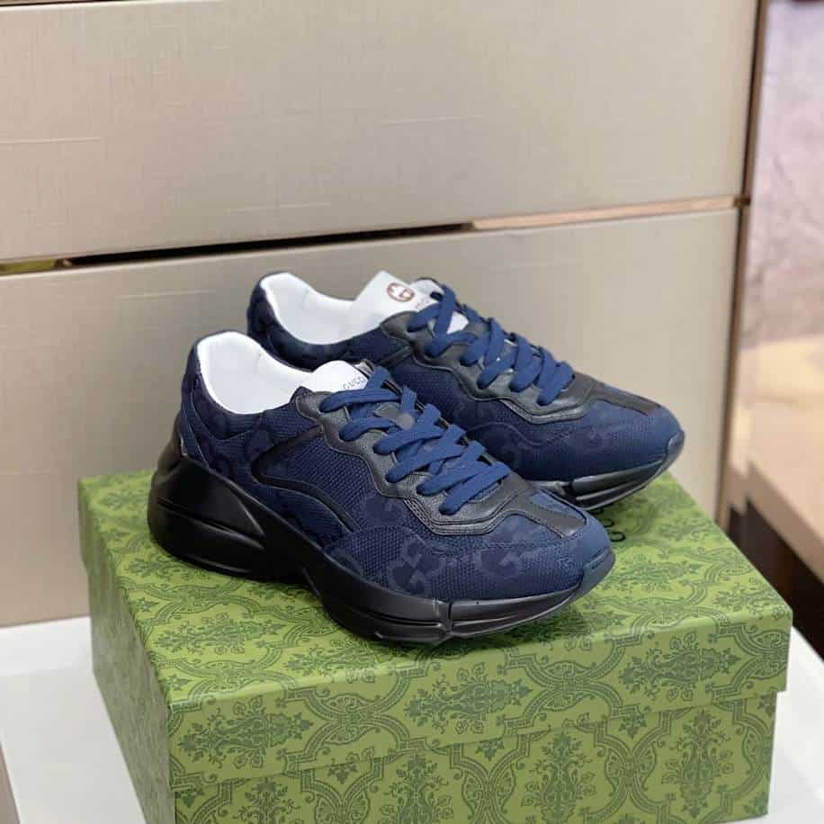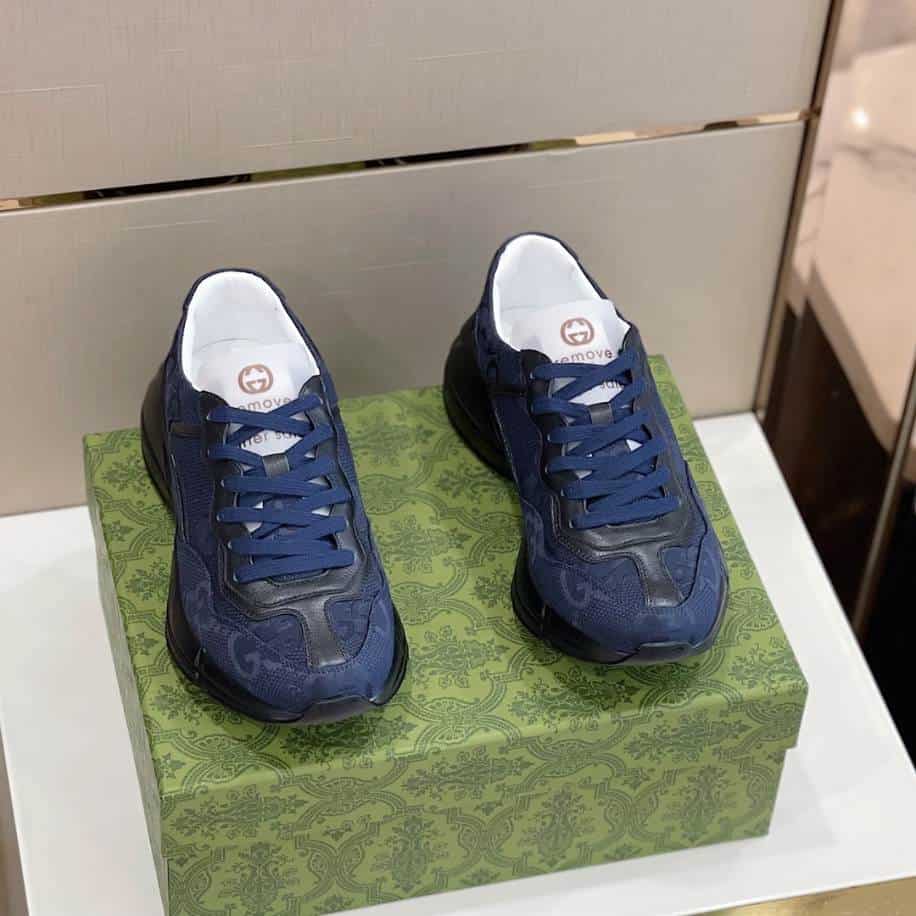 The Gucci Rhyton Blue Canvas Sneakers replica provides an affordable alternative for those drawn to the chunky, retro-inspired design of the original. These replicas aim to replicate the signature oversized silhouette, featuring the blue canvas upper with Gucci’s iconic branding details. Nevertheless, these replicas appeal to fashion enthusiasts seeking the trendy Gucci Rhyton look at a more accessible price point.