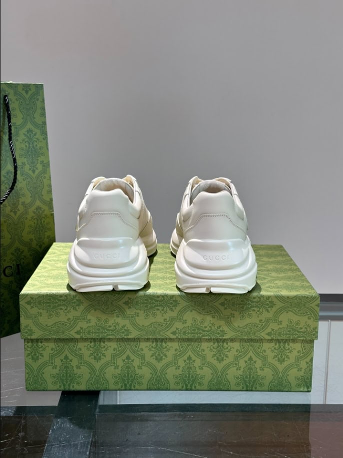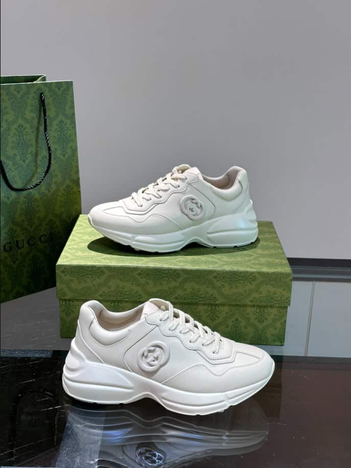 Often embellished with Gucci’s iconic logo or graphic accents, it adds an unmistakable brand flair while keeping a clean, neutral color palette that pairs effortlessly with various outfits. Renowned for its comfort and durability. The Rhyton Sneaker is perfect for adding a statement element to casual and elevated athleisure looks alike, embodying a modern yet timeless Gucci appeal.