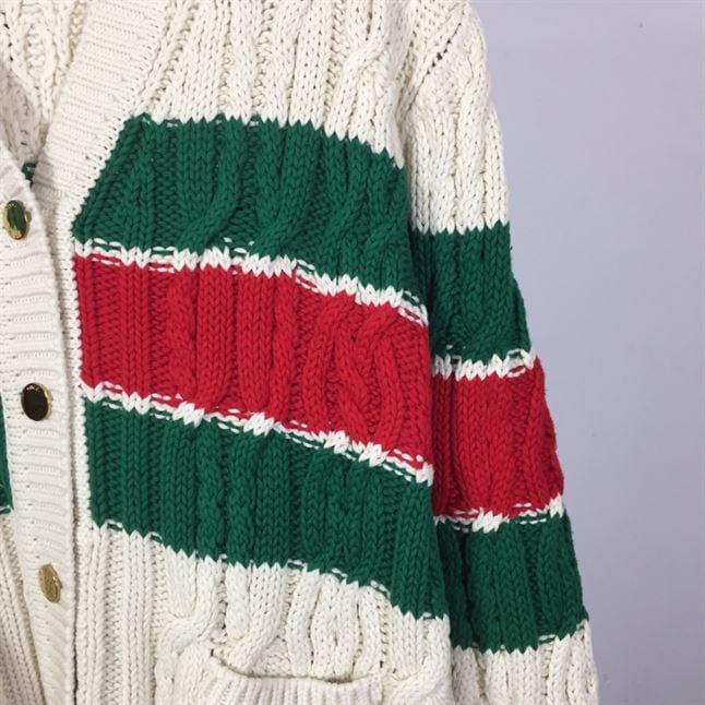 GUCCI WEB STRIPE CABLE-KNIT CARDIGAN ; GCK041