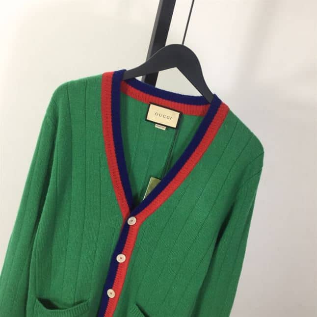 GUCCI WEB-STRIPE WOOL CARDIGAN GREEN ; GCK040