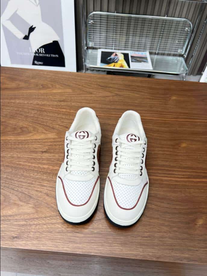 The Gucci White Brown Logo Sneakers replica combines timeless elegance with a casual edge, featuring a clean white base accented by sophisticated brown logo detailing. These sneakers offer a polished yet versatile look, perfect for pairing with everything from jeans to tailored pieces. Emulating the luxurious style of the original, this replica provides an affordable option without compromising on aesthetics or comfort. Step out in style with these sleek, logo-adorned sneakers that effortlessly blend classic design with modern appeal.