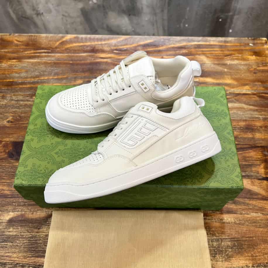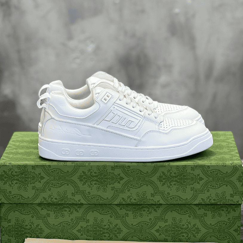 The Gucci Sneaker is a sleek, versatile footwear choice that effortlessly combines luxury with a sporty, modern edge. Crafted from premium white leather, this mid-top sneaker offers a streamlined design that extends just above the ankle, providing both style and additional support.
