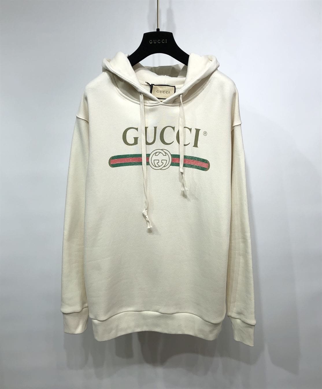 GUCCI WHITE VINTAGE LOGO COTTON SWEATSHIRT HOODED ; GCK001