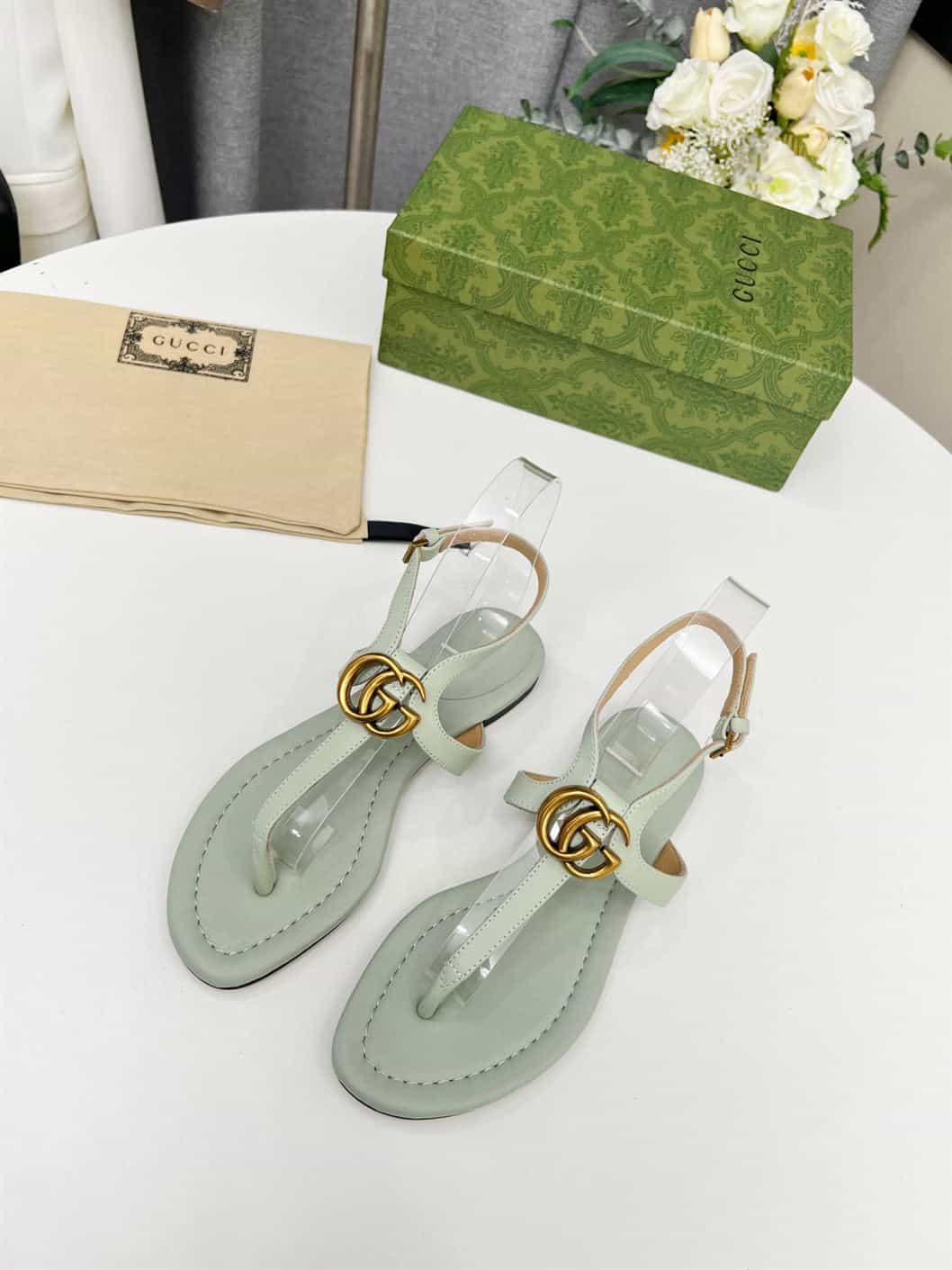 GUCCI WOMEN’S DOUBLE G THONG SANDAL LIGHT GREEN LEATHER – GSL019