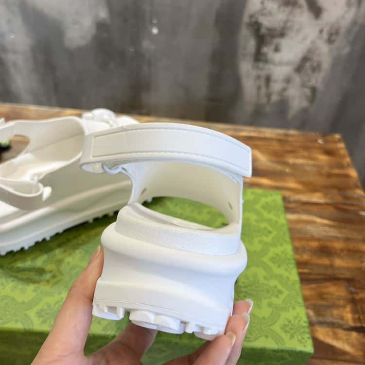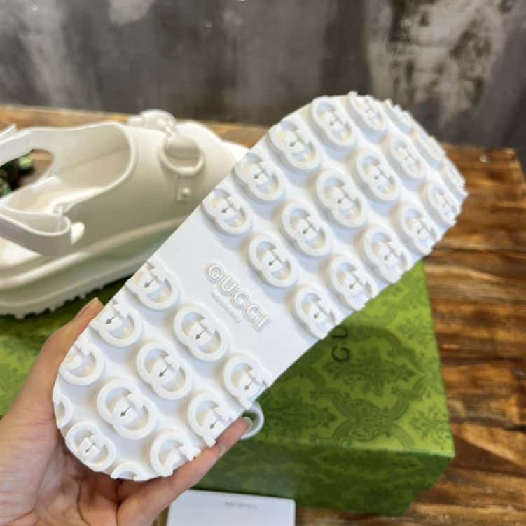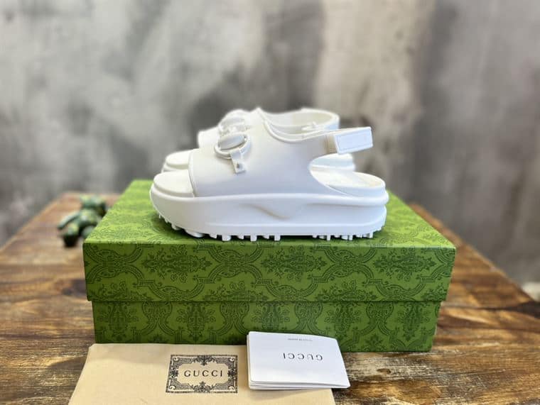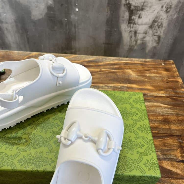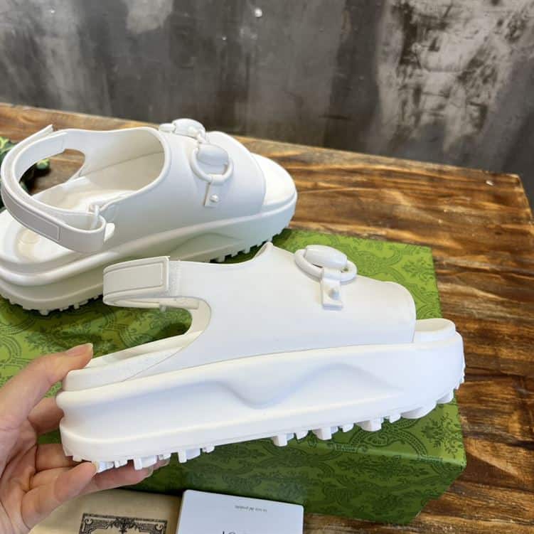 GUCCI WOMEN’S HORSEBIT FLATFORM SANDAL WHITE RUBBER – GSL017