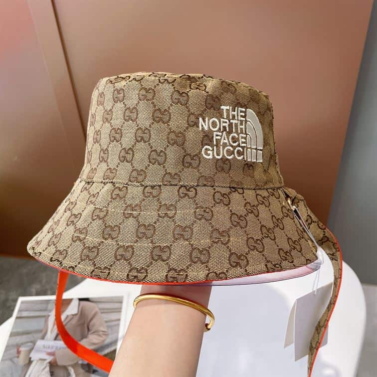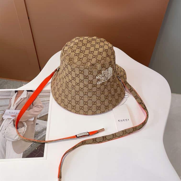 The Gucci x The North Face GG Canvas Bucket Hat represents a collaboration that merges high fashion with outdoor utility. Featuring durable materials and often adorned with bold branding, it’s ideal for both urban adventures and outdoor escapades. The Gucci x The North Face GG Canvas Hat not only provides sun protection but also makes a bold style statement, showcasing a fusion of fashion-forward elegance and practical outdoor wear.