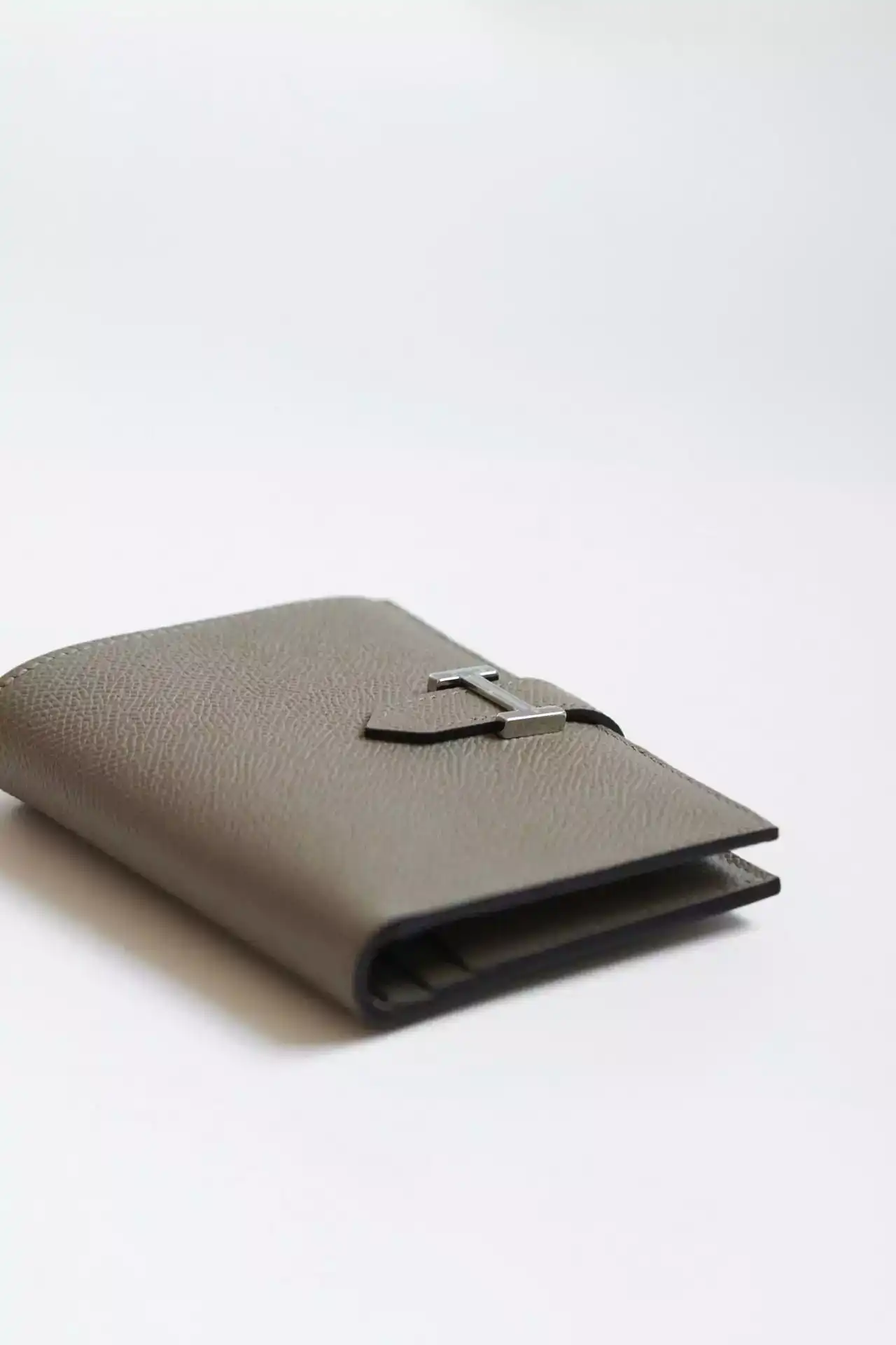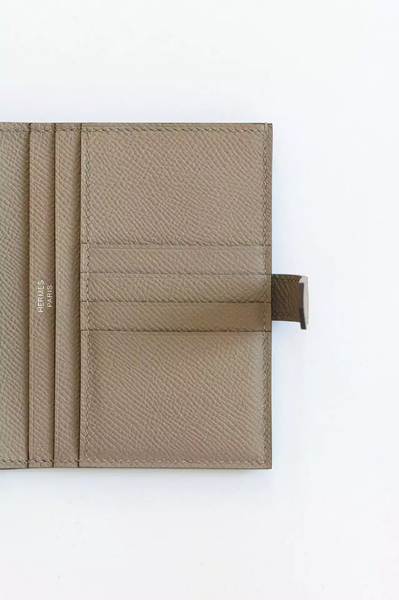 Hermes Bearn Compact Handmade Wallet in Gris Asphalt Epsom Calfskin ; HW153