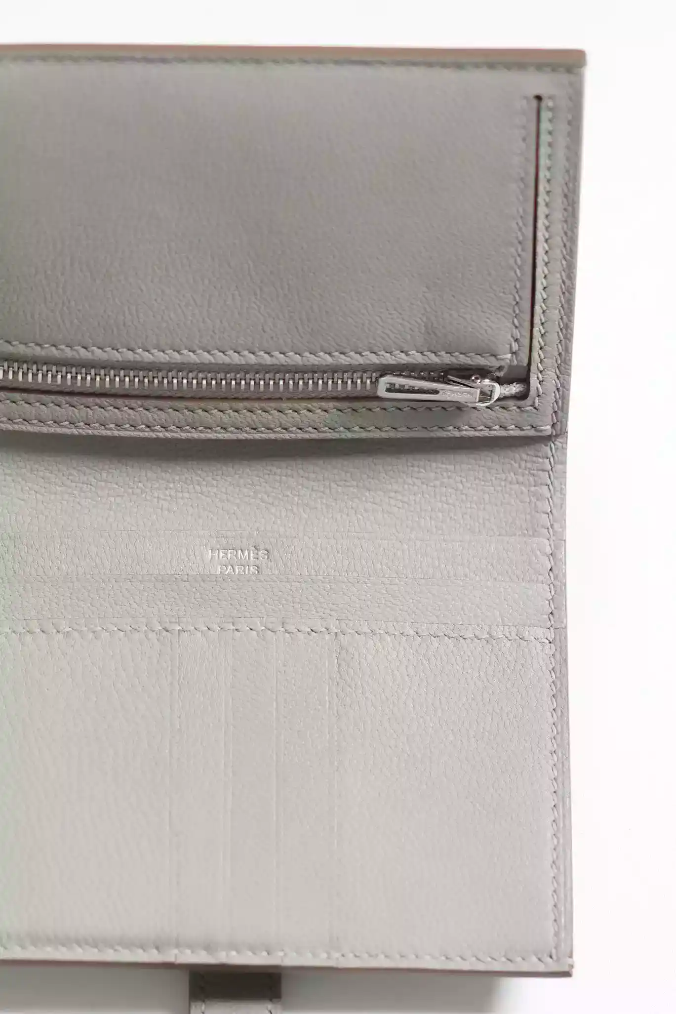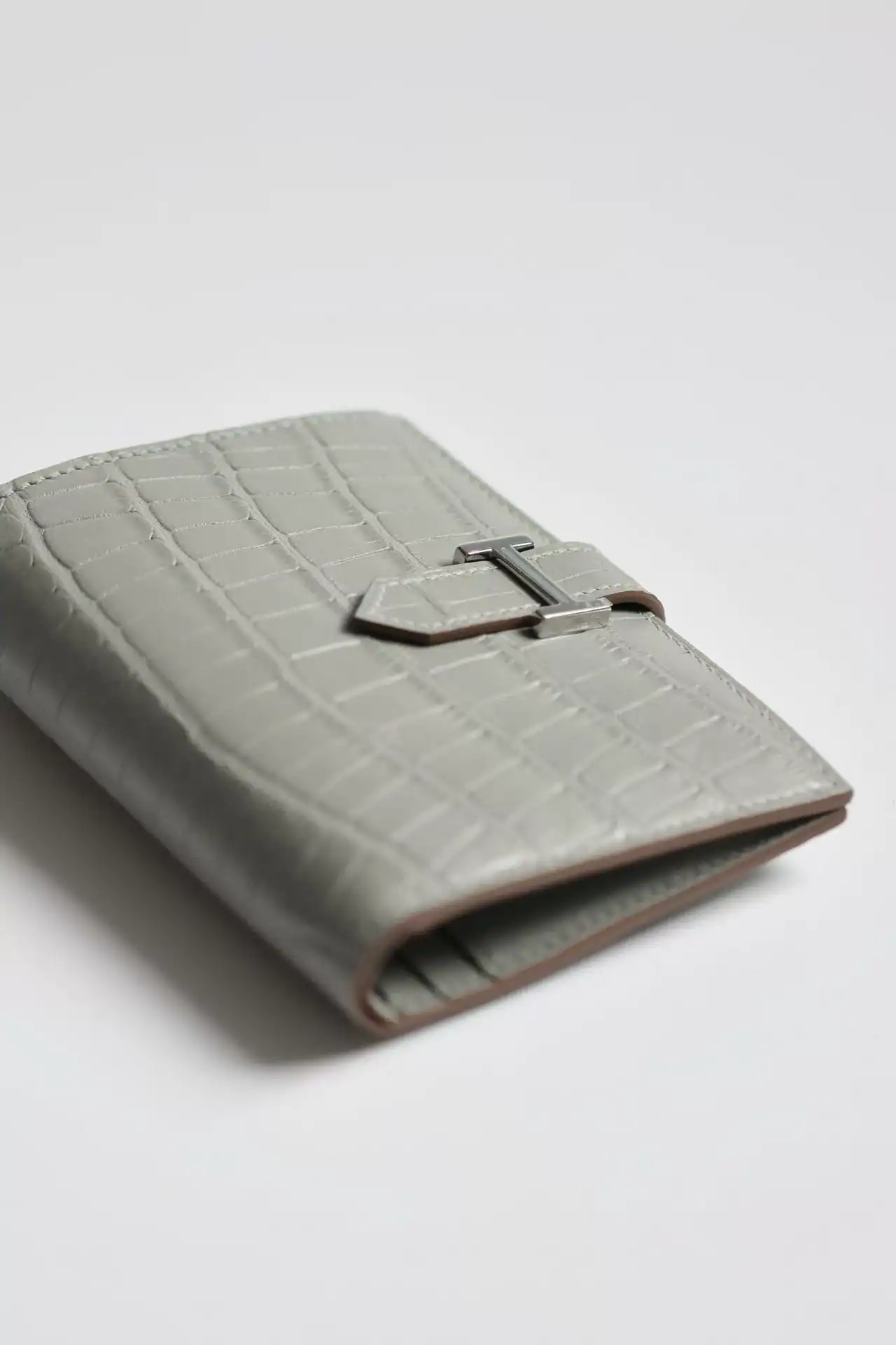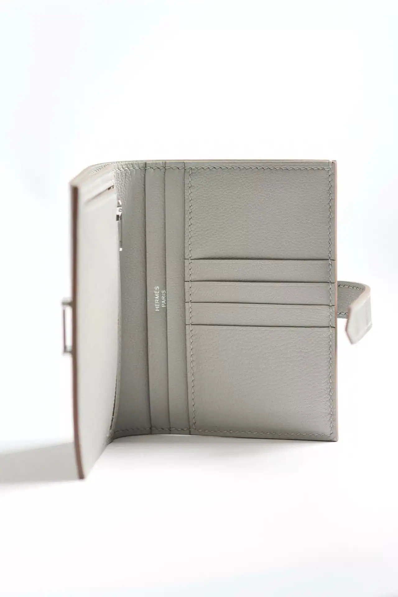 Hermes Bearn Compact Wallet in Pearl Grey Matte Alligator Leather ; HW170