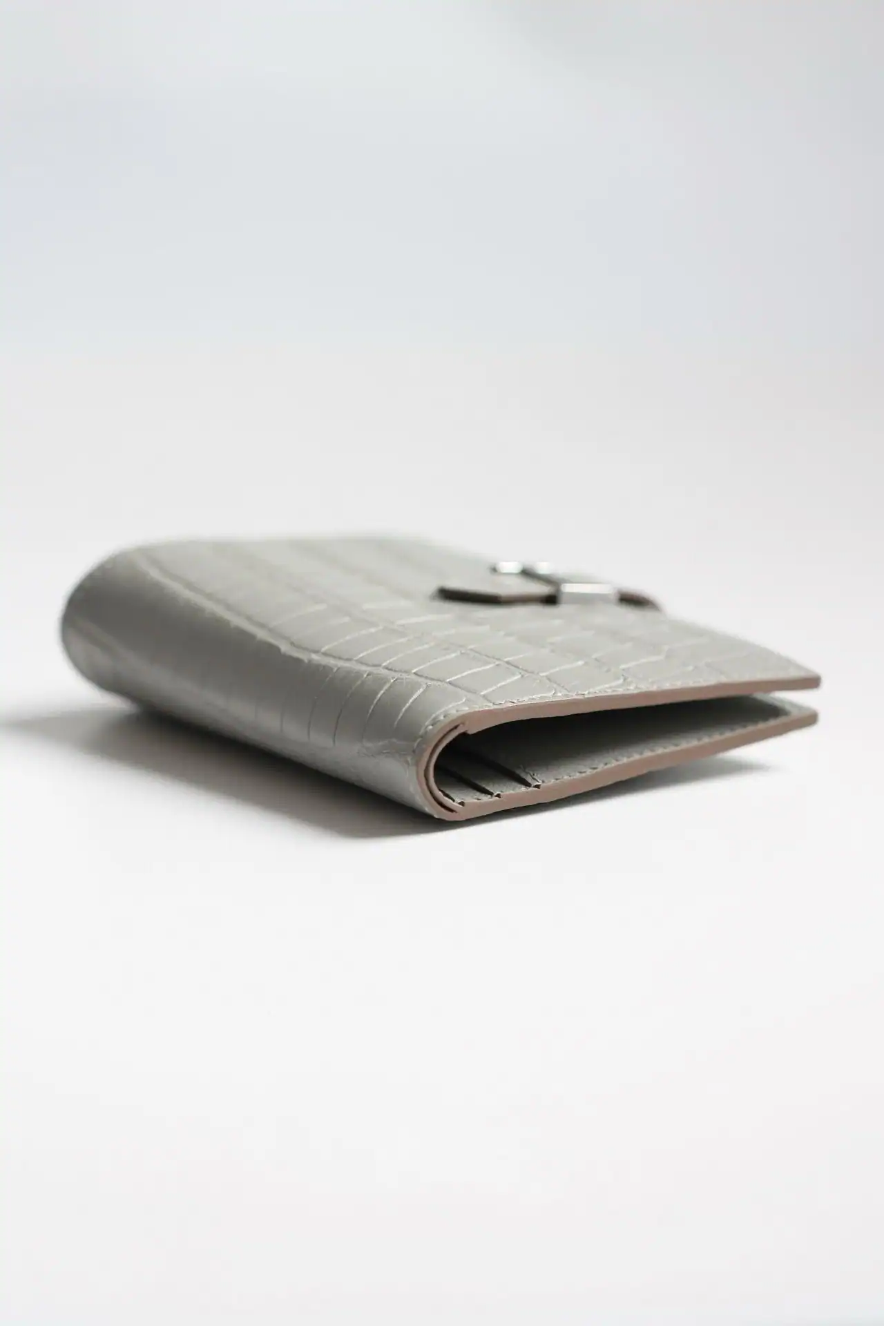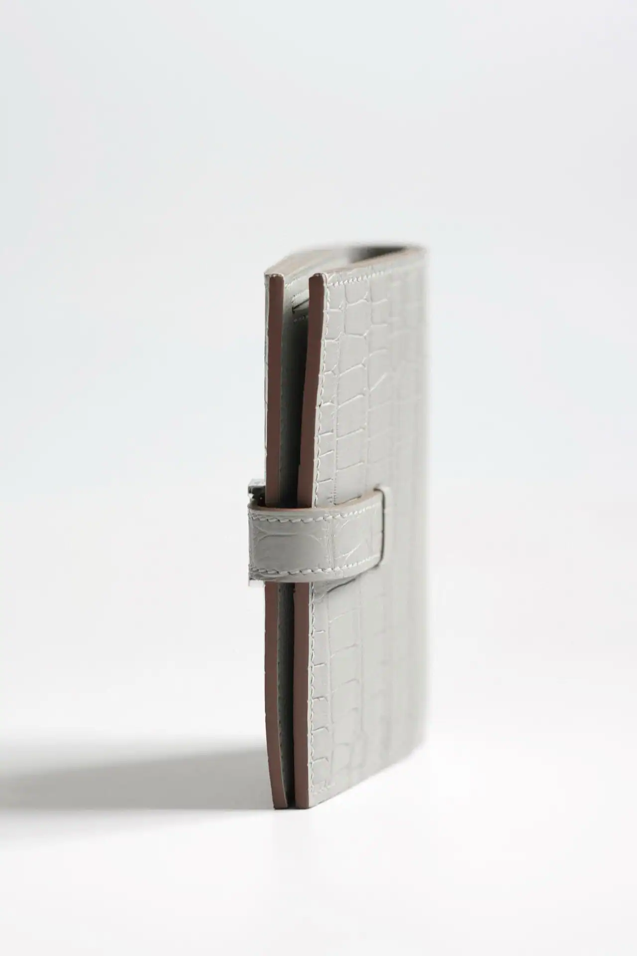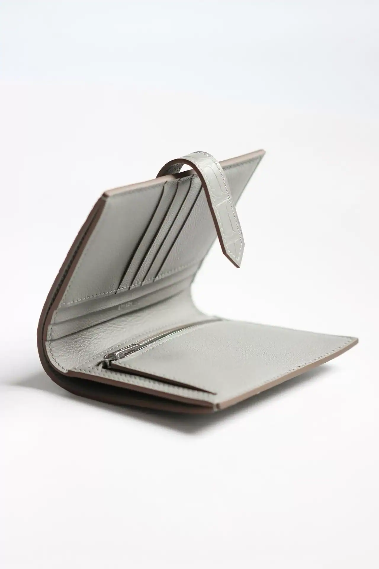 Hermes Bearn Compact Wallet in Pearl Grey Matte Alligator Leather ; HW170