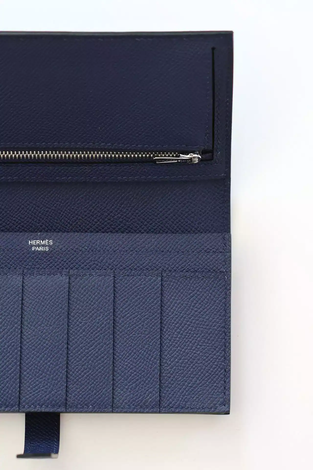 Hermes Bearn Long Handmade Wallet in Blue Saphir Epsom Calfskin ; HW158