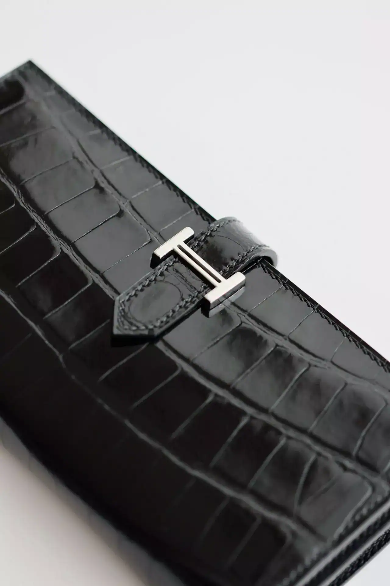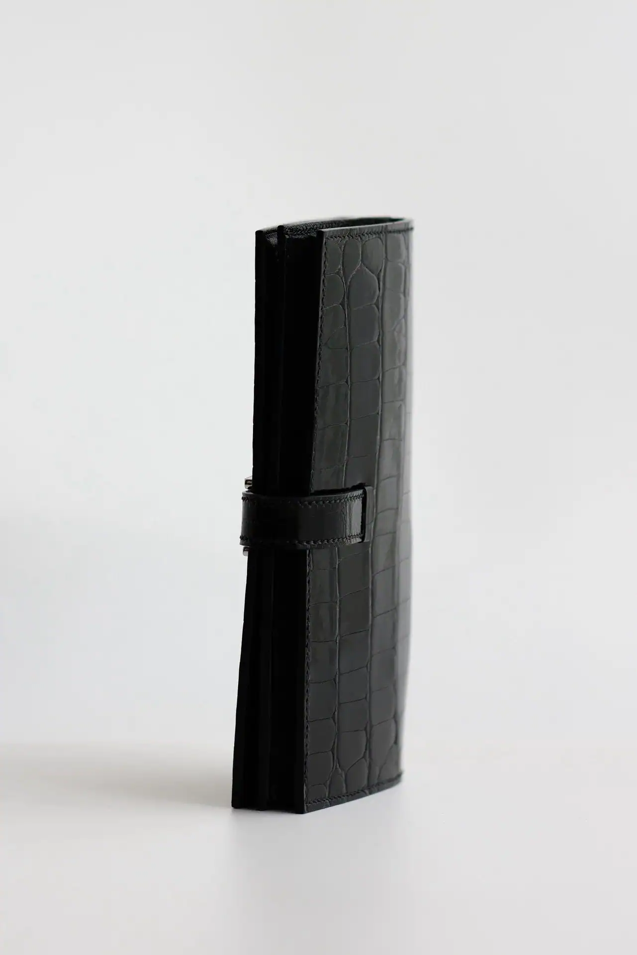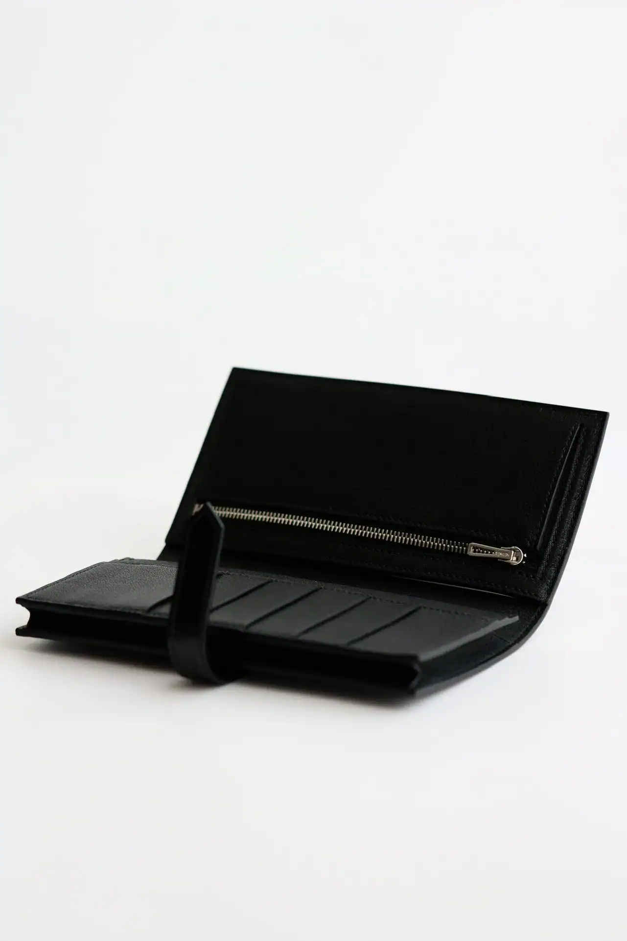 Hermes Bearn Long Wallet in Black Shiny Alligator Leather ; HW165
