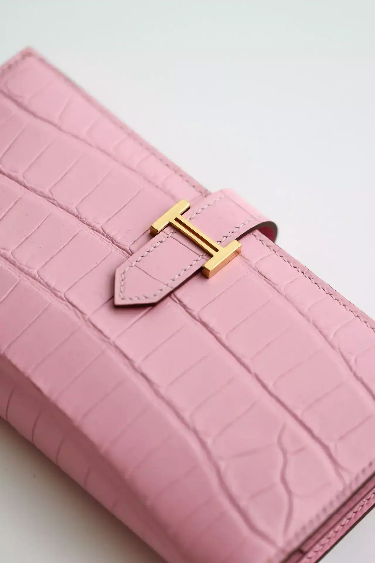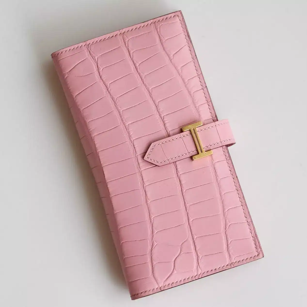Hermes Bearn Long Wallet in Pink Matte Alligator Leather ; HW166