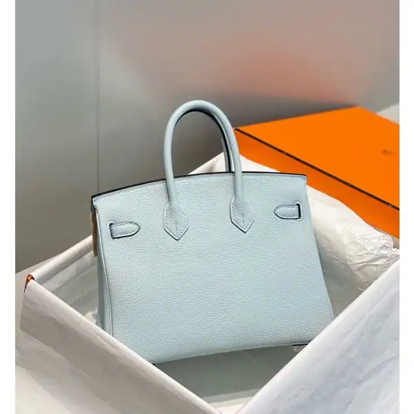 Hermes Birkin 25cm Bag In Blue Brume Clemence Leather PHW ; HW003