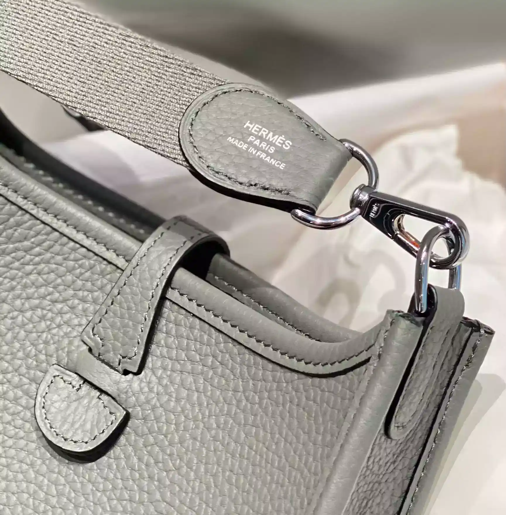 Hermes Evelyne III TPM Bag In Gris Meyer Clemence Leather ; HW043