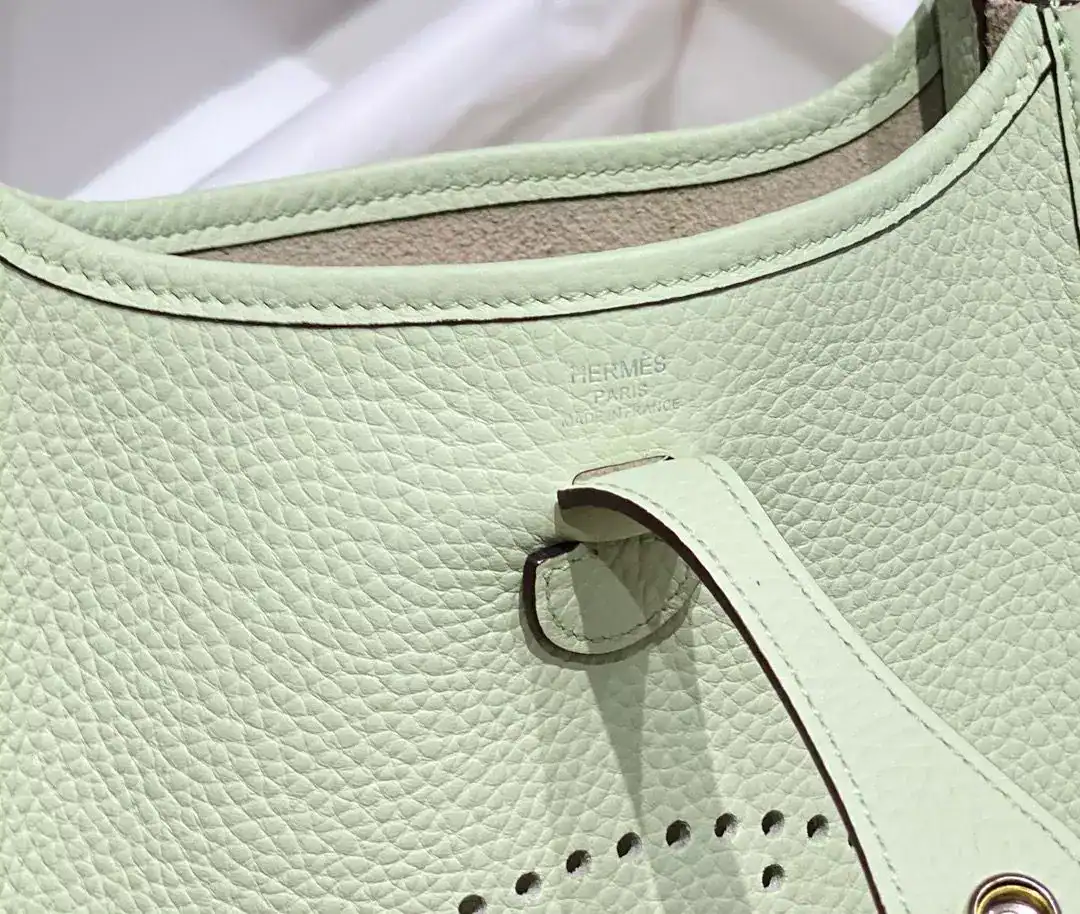 Hermes Evelyne III TPM Bag In Vert Fizz Clemence Leather ; HW044