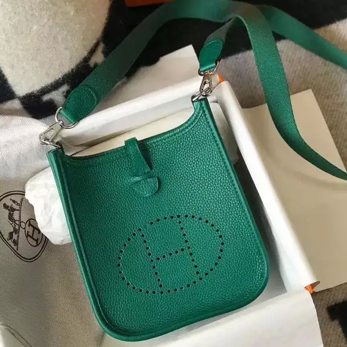 Hermes Evelyne III TPM Bag In Vert Vertigo Clemence Leather ; HW056