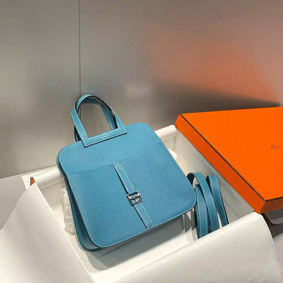 Hermes Halzan 25 Bag in Blue Jean Clemence Leather ; HW091