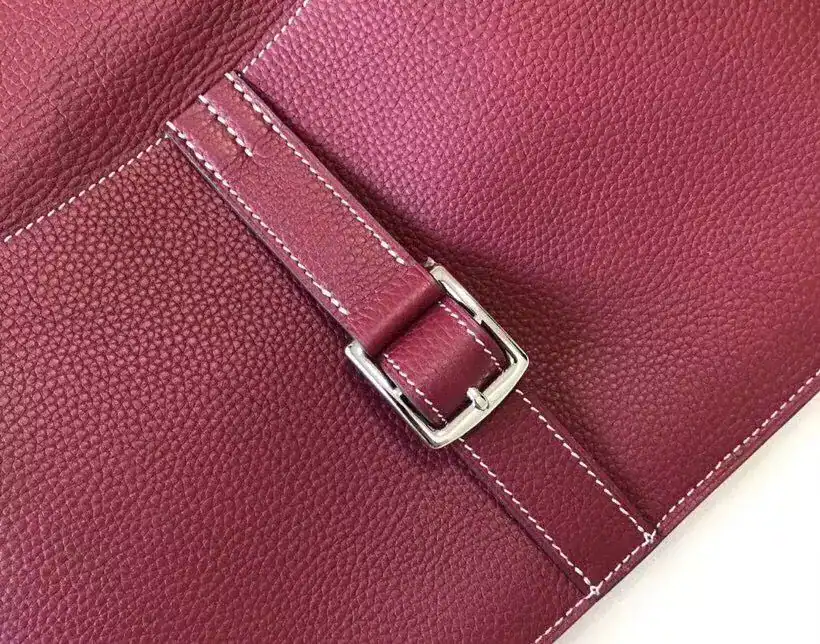 Hermes Halzan 31cm Bag In Bordeaux Clemence Leather ; HW095
