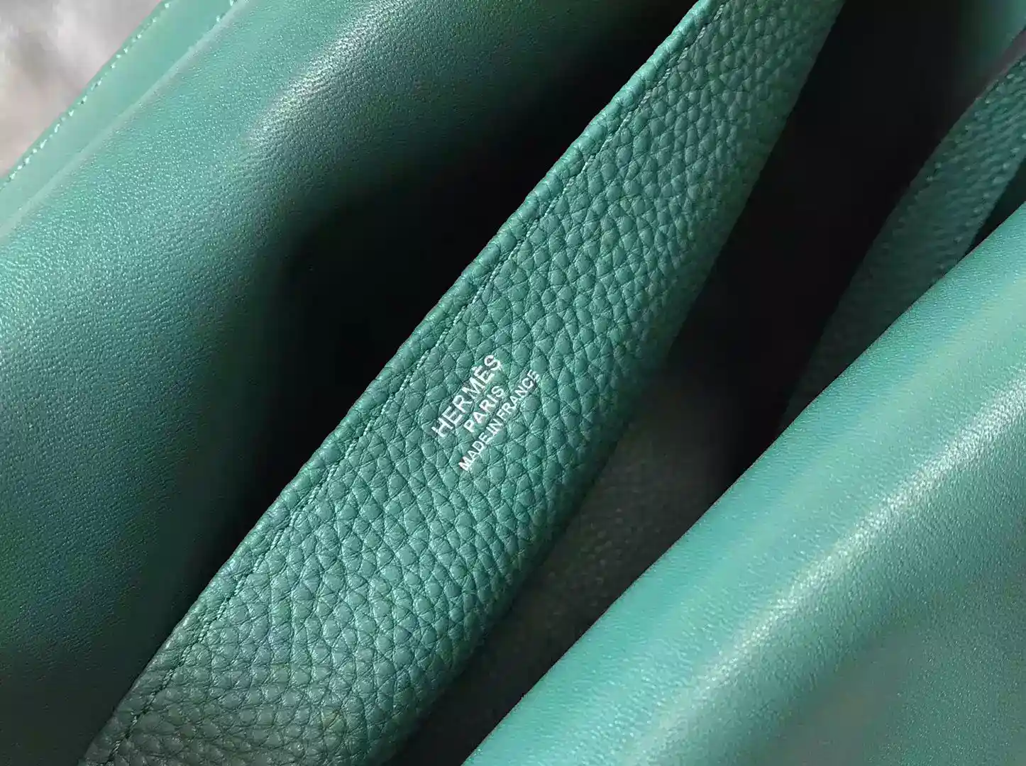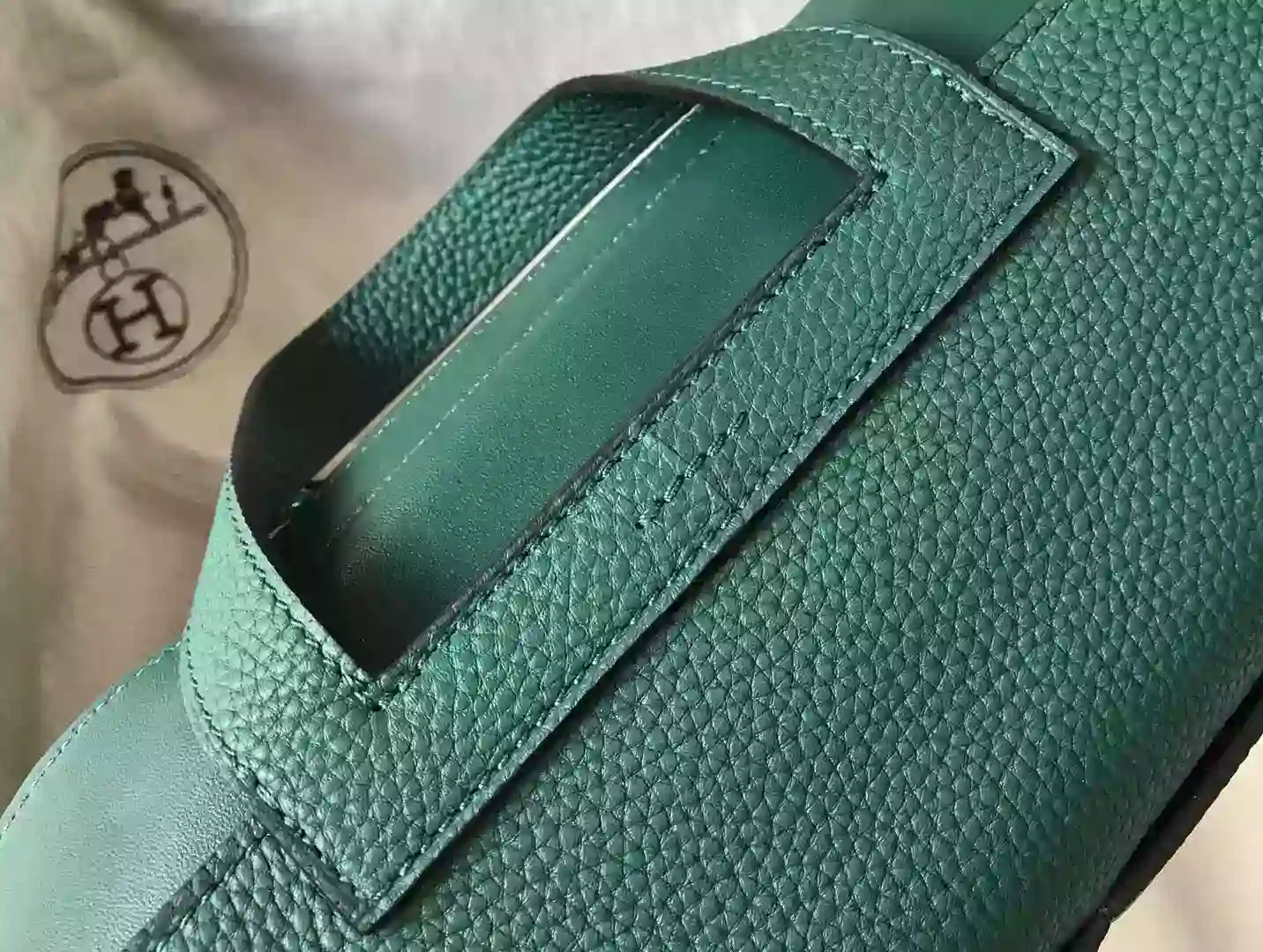 Hermes Halzan 31cm Bag In Malachite Clemence Leather ; HW098