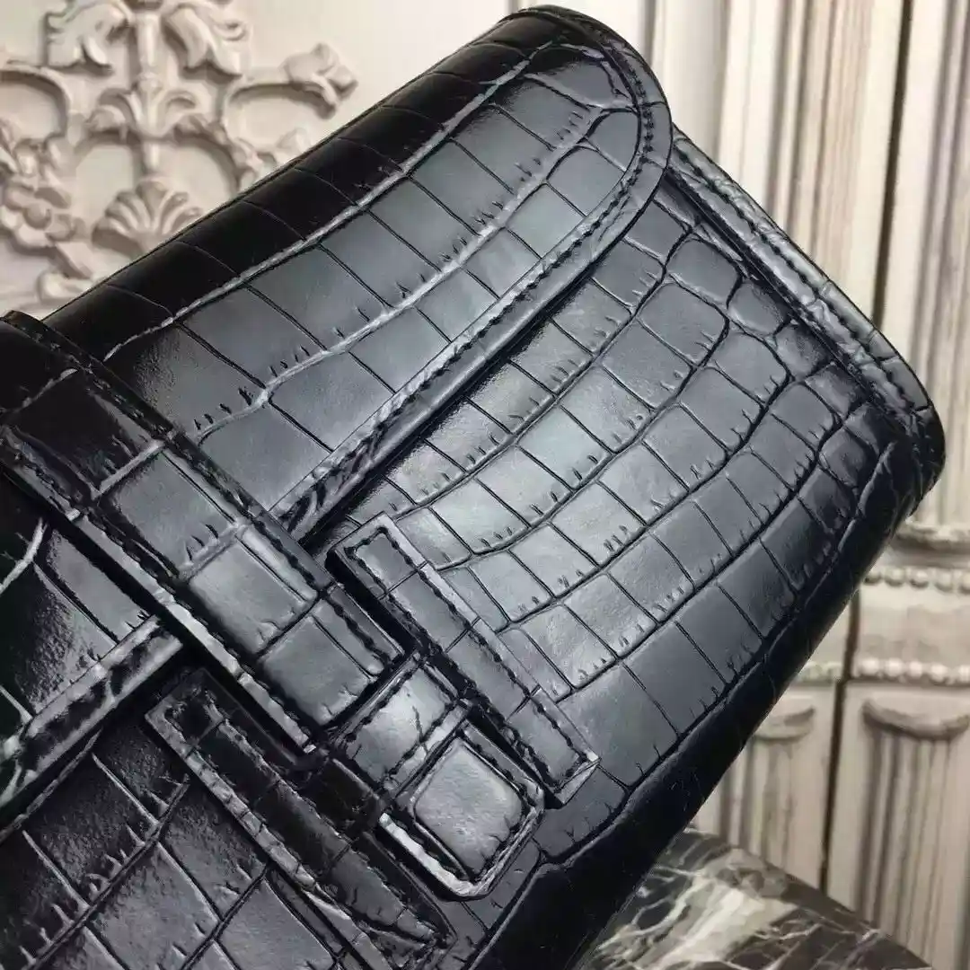 Hermes Jige Elan 29 Clutch In Black Crocodile Leather ; HW113