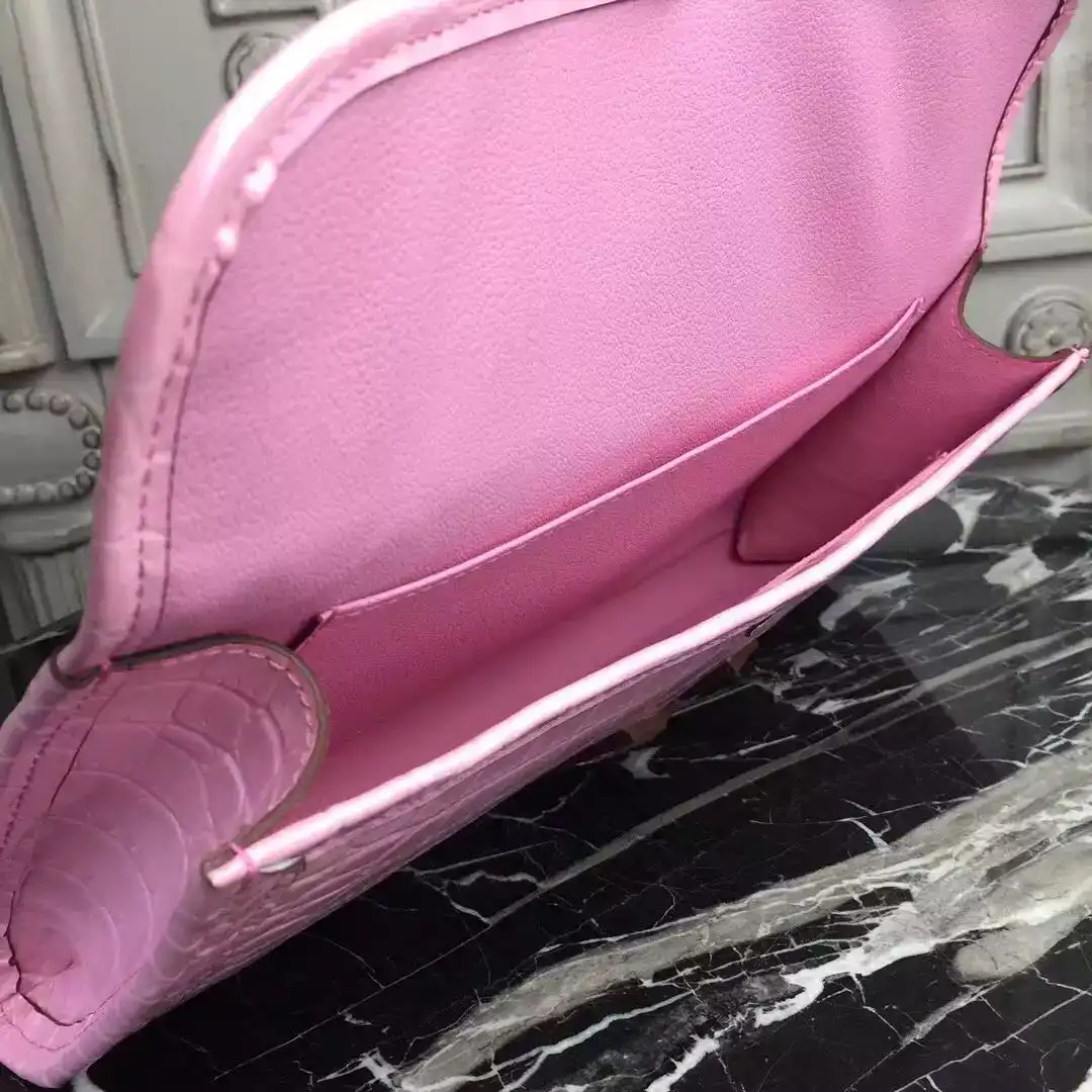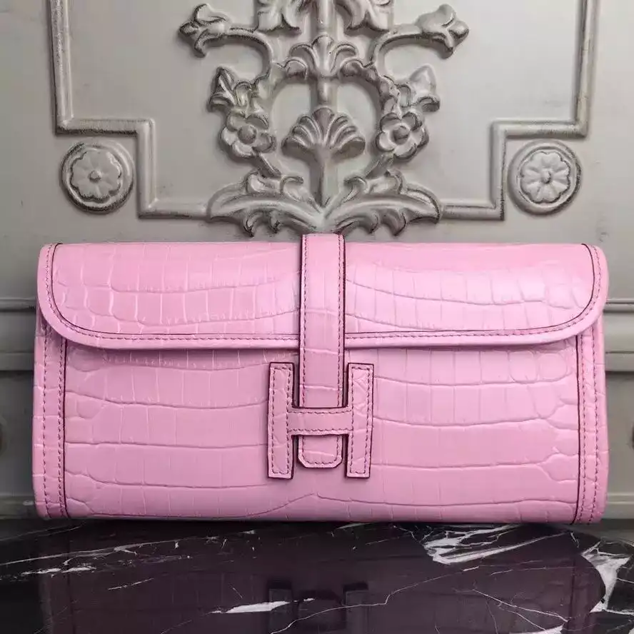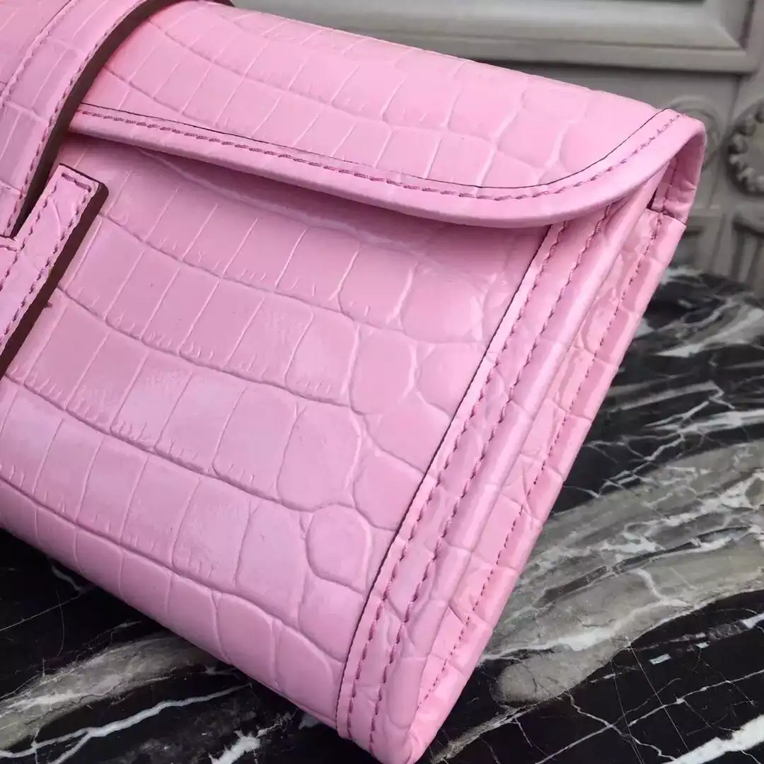 Hermes Jige Elan 29 Clutch In Pink Crocodile Leather ; HW111