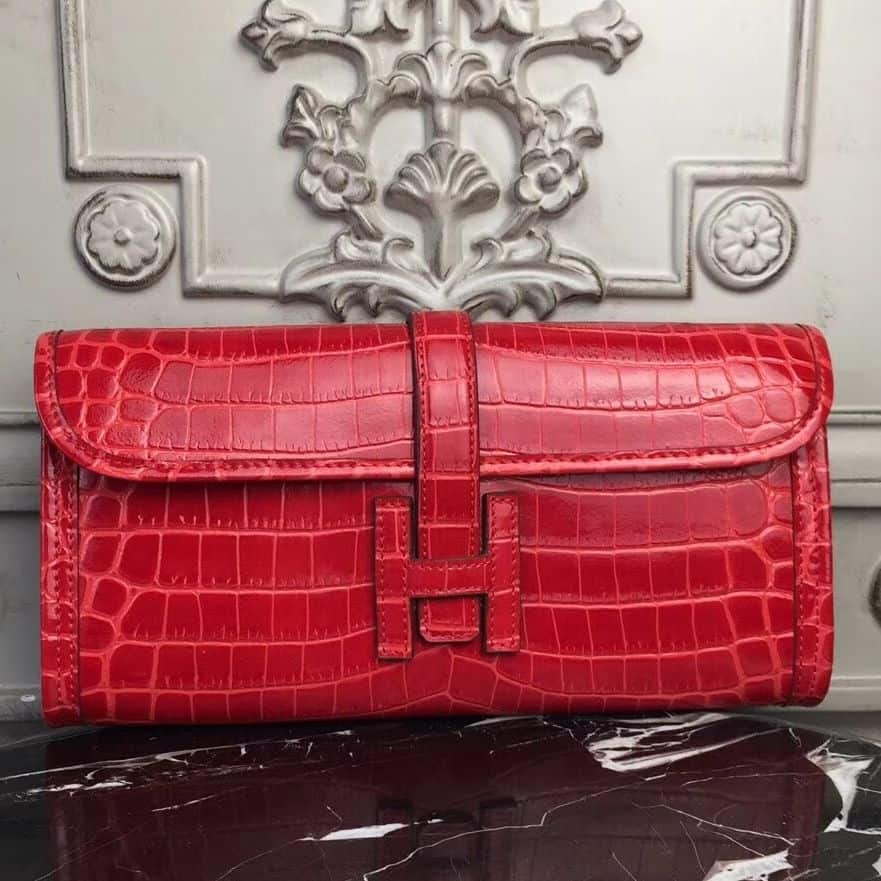Hermes Jige Elan 29 Clutch In Red Crocodile Leather ; HW110