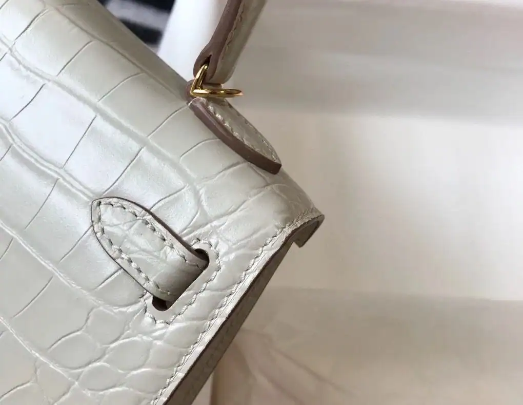 Hermes Kelly Mini II Bag In Beton Embossed Crocodile Leather ; HW135