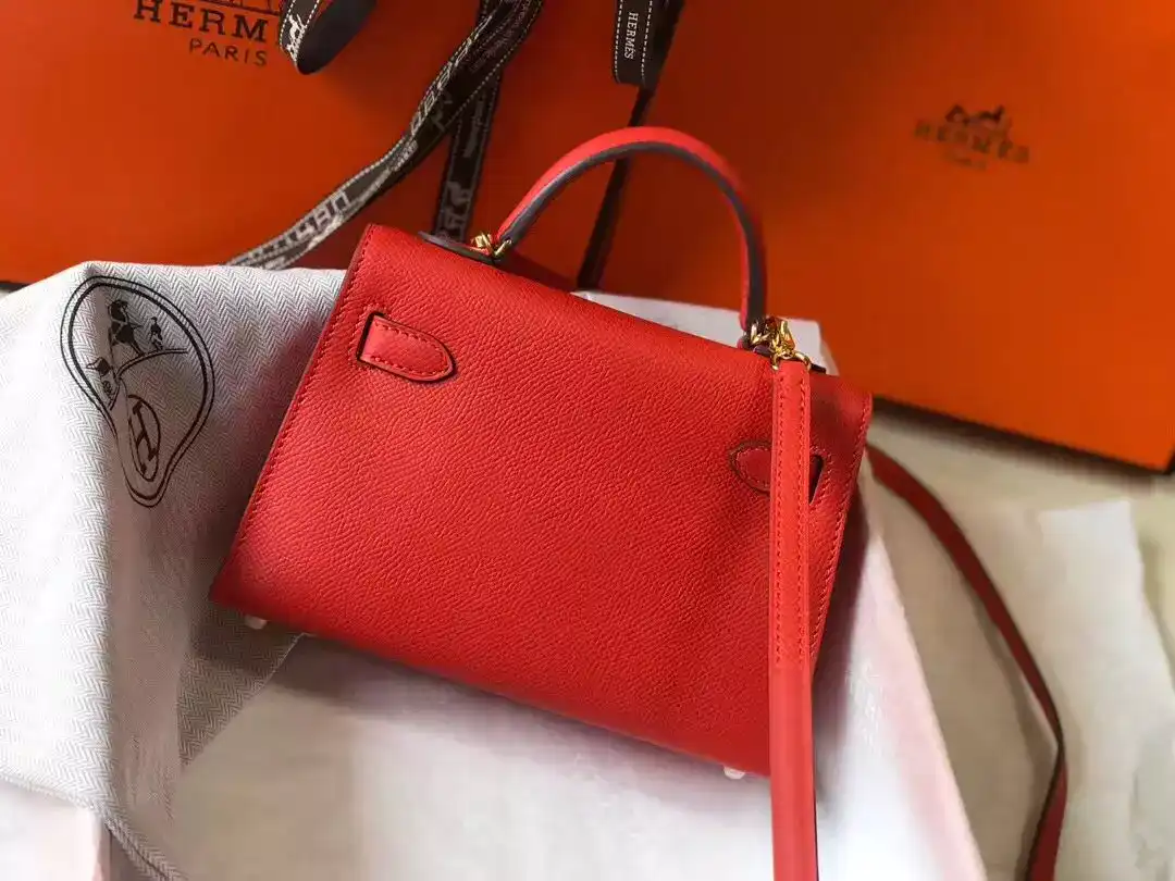 Hermes Kelly Mini II Bag In Rouge Casaque Epsom Leather GHW ; HW124
