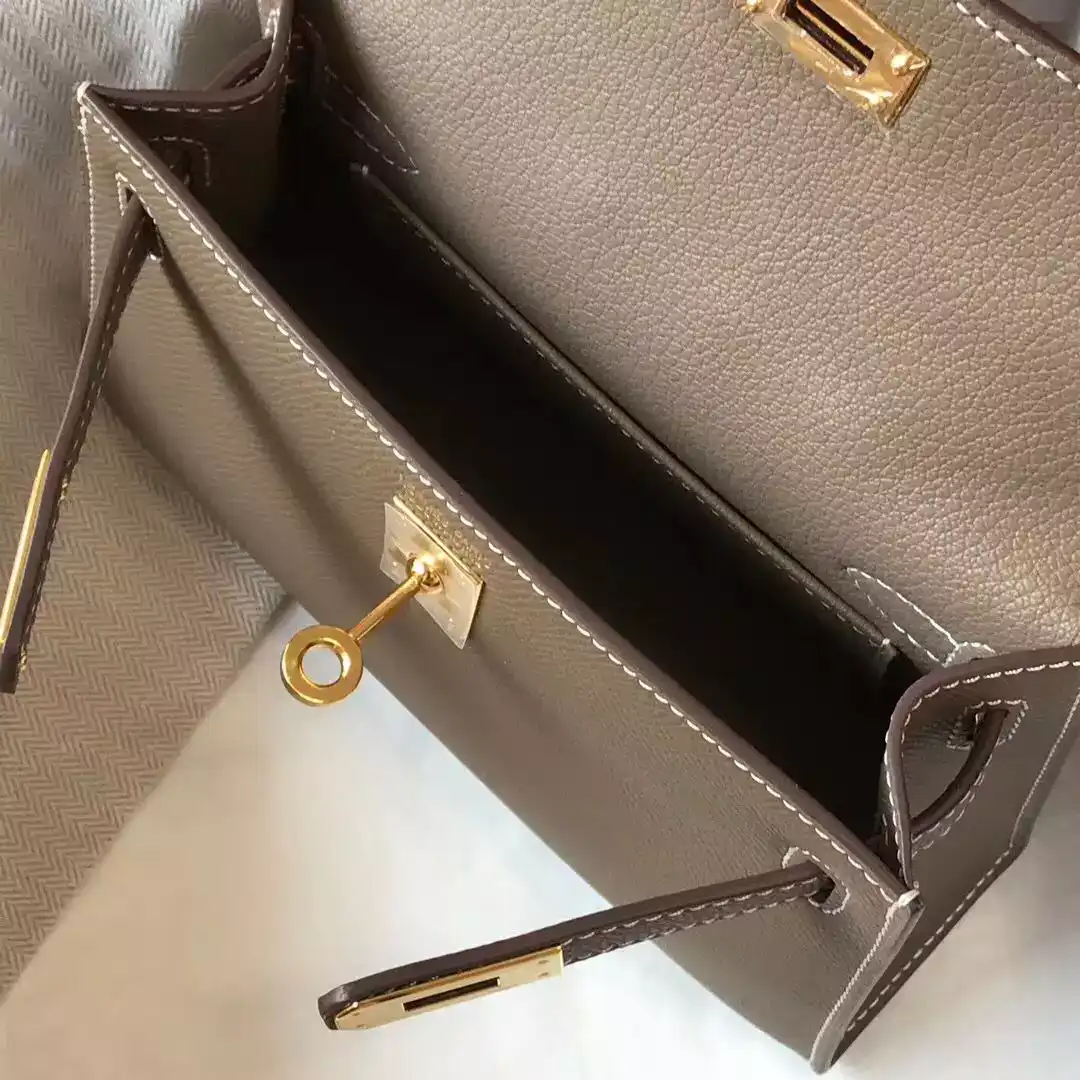 Hermes Kelly Mini II Bag In Taupe Grey Epsom Leather GHW ; HW125