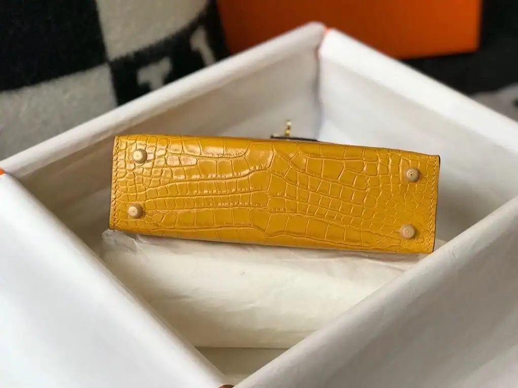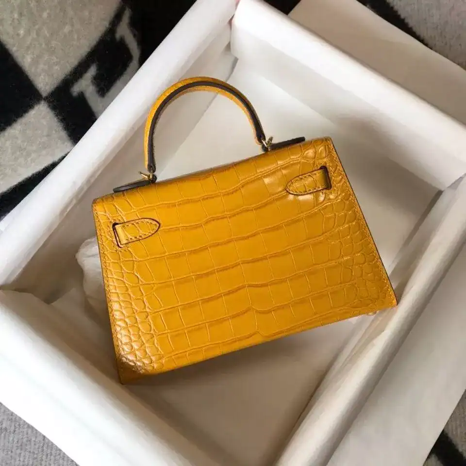 Hermes Kelly Mini II Bag In Yellow Embossed Crocodile Leather ; HW128
