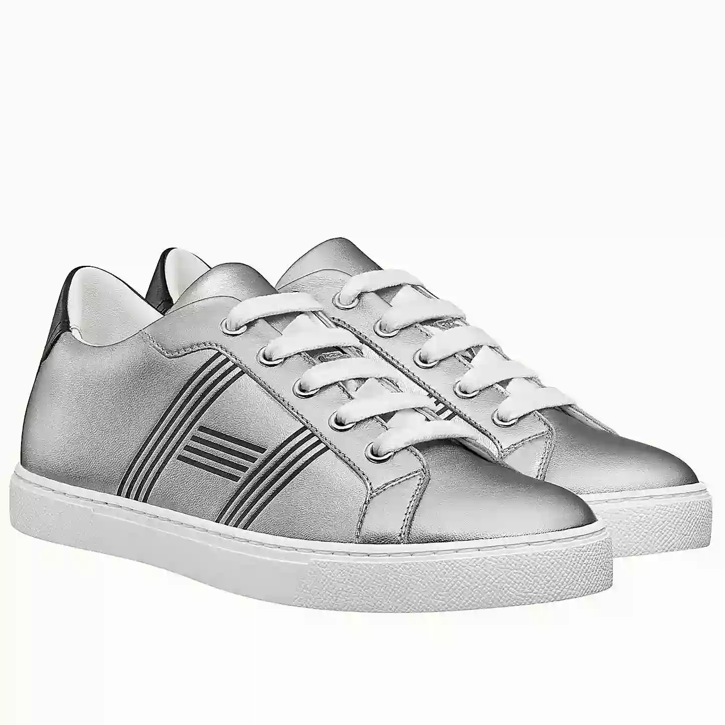 Hermes Men’s Avantage Sneakers In Grey Metallic Leather ; HM059