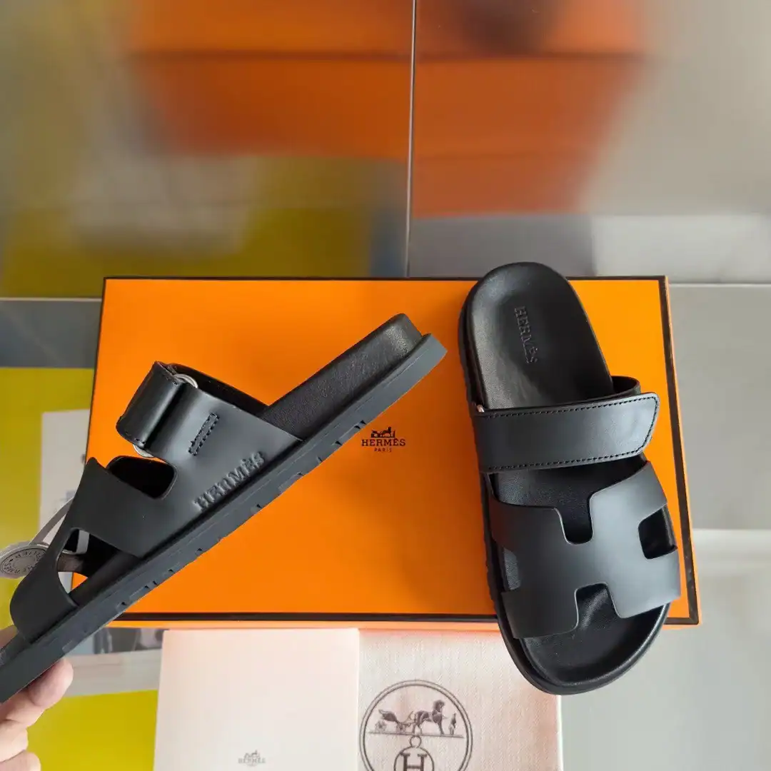 HERMES MEN’S CHYPRE SANDALS IN BLACK CALFSKIN ; HMSD007