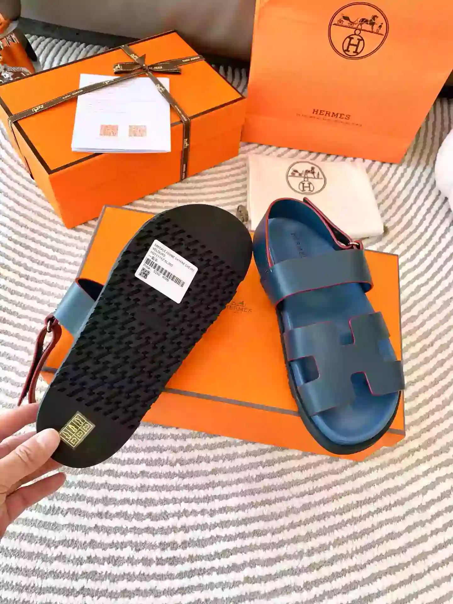 HERMES MEN’S GENIUS SANDALS IN BLUE CALFSKIN ; HMSD004