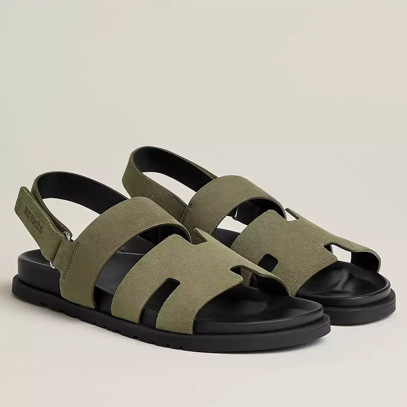 HERMES MEN’S GENIUS SANDALS IN GREEN SUEDE CALFSKIN ; HMSD005