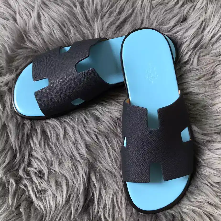 HERMES MEN’S IZMIR SANDALS IN BLACK EPSOM CALFSKIN ; HMSD028