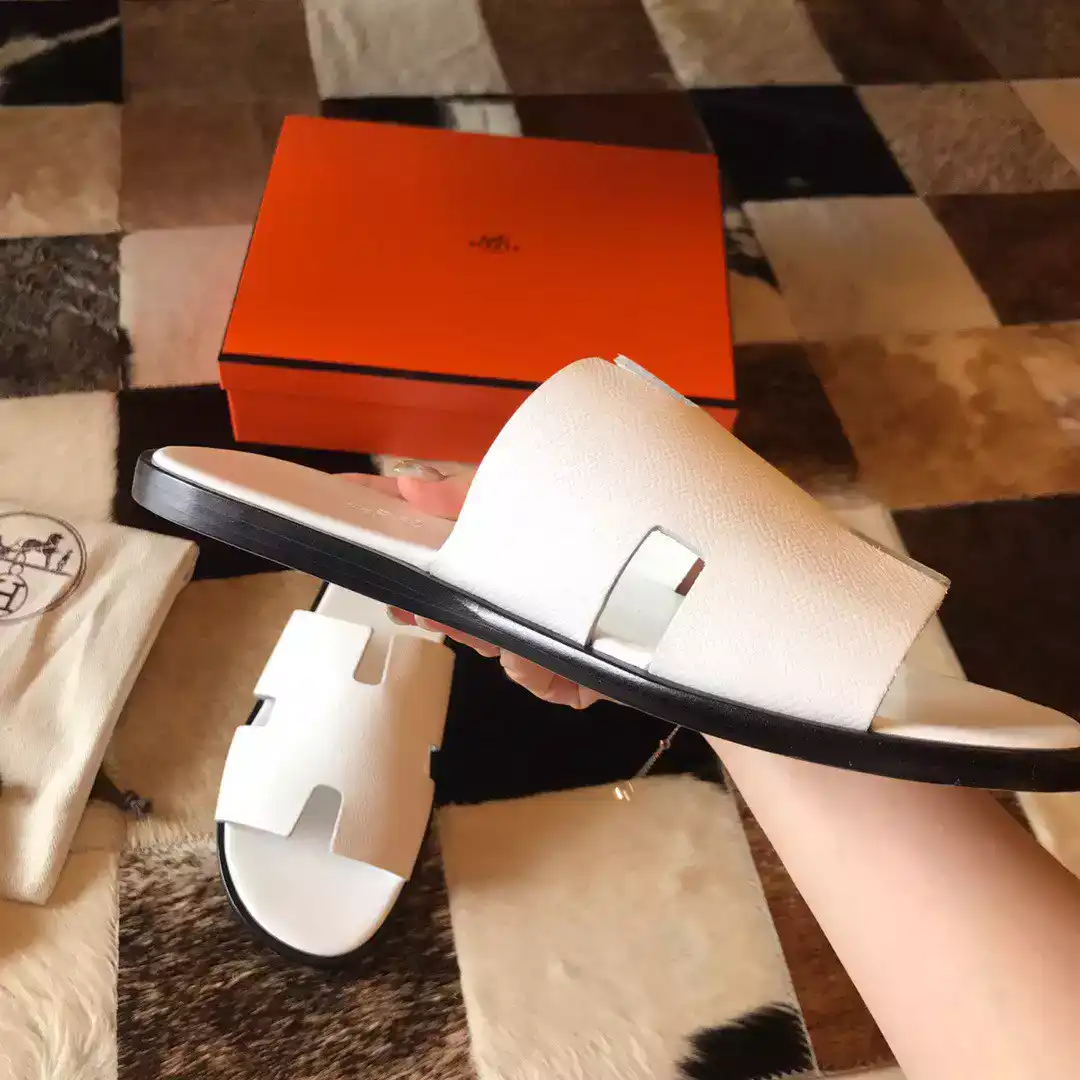 HERMES MEN’S IZMIR SANDALS IN WHITE EPSOM LEATHER ; HMSD030