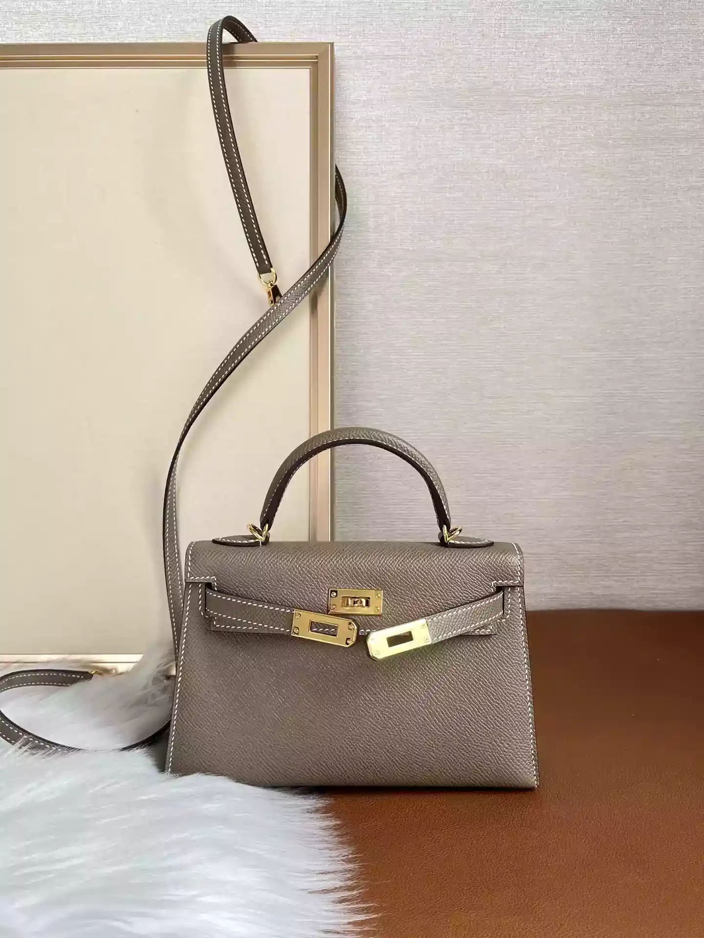 Discover timeless elegance with the Hermes Mini Kelly 20 in Etoupe Epsom with Gold Hardware (HW192) – a coveted piece crafted from luxurious Epsom leather in the iconic Etoupe shade, finished with stunning gold hardware.