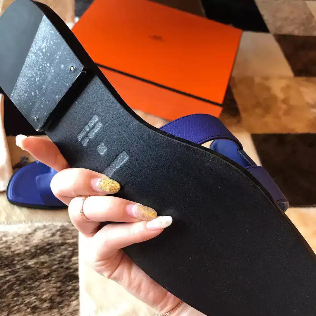 HERMES ORAN SLIDE SANDALS IN BLUE ELECTRIC EPSOM CALFSKIN ; HMSD073