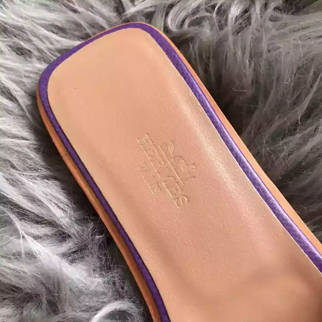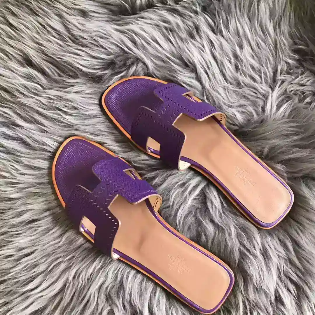 HERMES ORAN SLIDE SANDALS IN PURPLE EPSOM PERFORATED CALFSKIN ; HMSD098