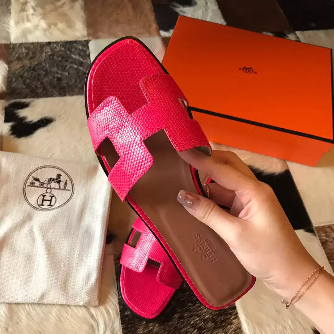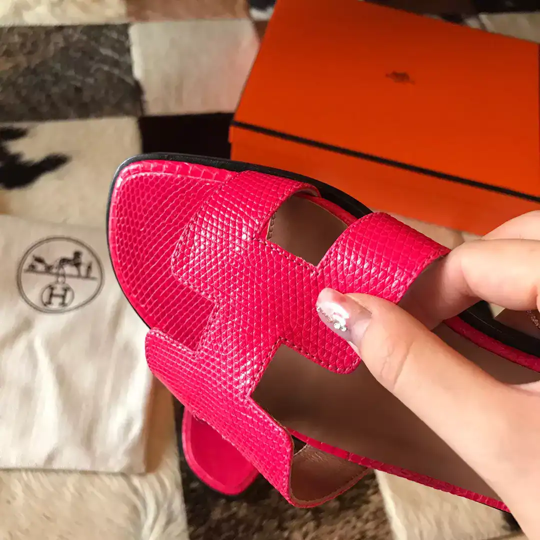 HERMES ORAN SLIDE SANDALS IN RED LIZARD LEATHER ; HMSD121