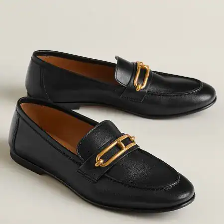 SKU: HM069 Categories: FOOTWEAR, HERMES, LOAFER AND DRIVER, Women Tags: Black Leather Flats, Hermes Loafers, Women's Designer Shoes
