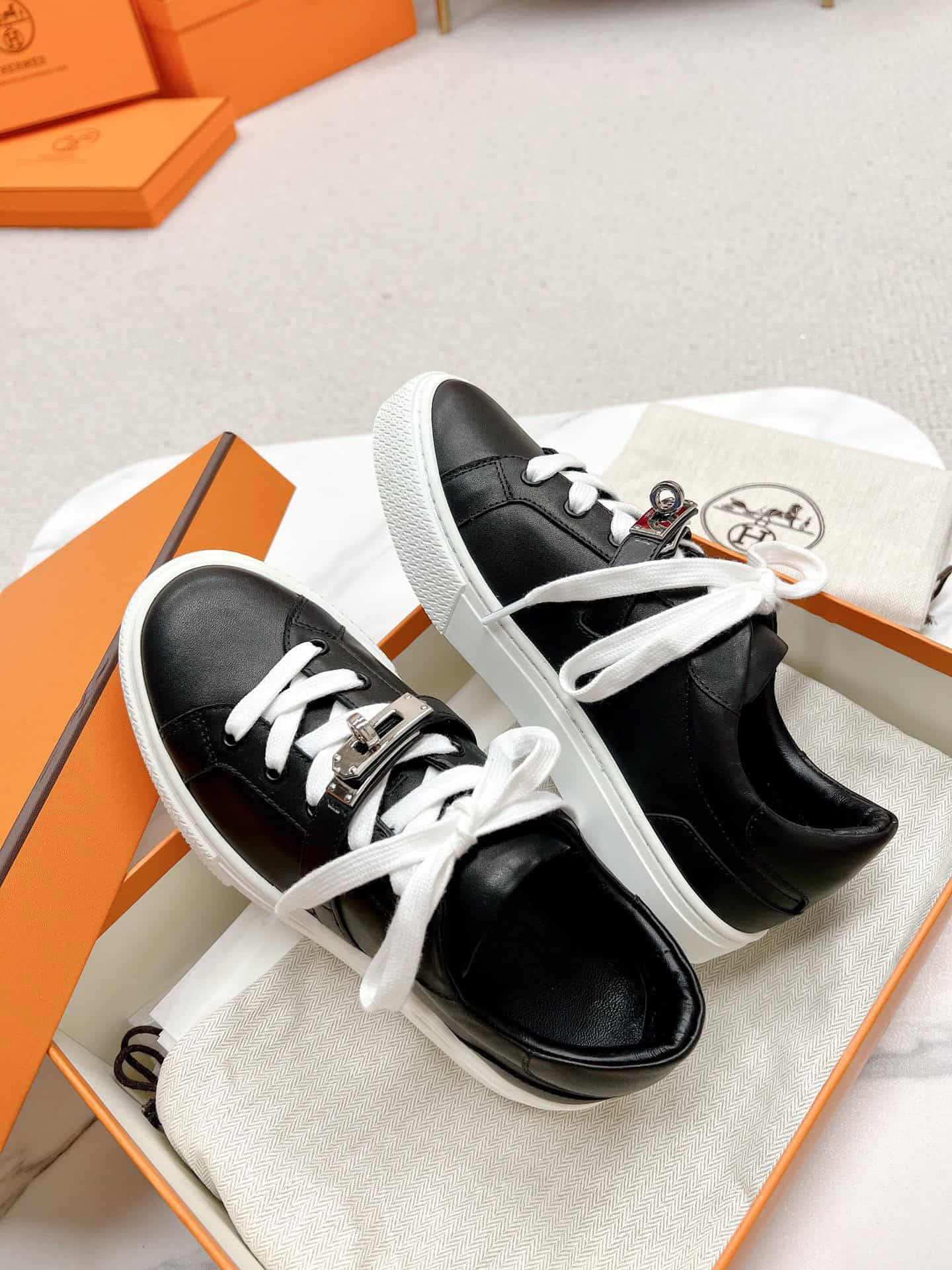 Hermes Women’s Day Sneakers in Black Leather ; HM066