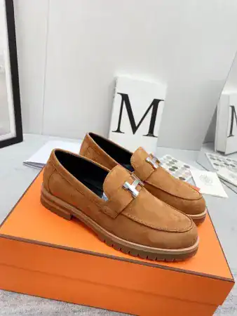 SKU: HM075 Categories: FOOTWEAR, HERMES, LOAFER AND DRIVER, Women Tags: Brown Suede Leather Shoes, Designer Luxury Footwear, Hermes Women's Loafers