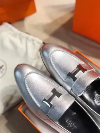SKU: HM082 Categories: FOOTWEAR, HERMES, LOAFER AND DRIVER, Women Tags: Hermes Loafers, Silver Leather Shoes, Women's Luxury Footwear