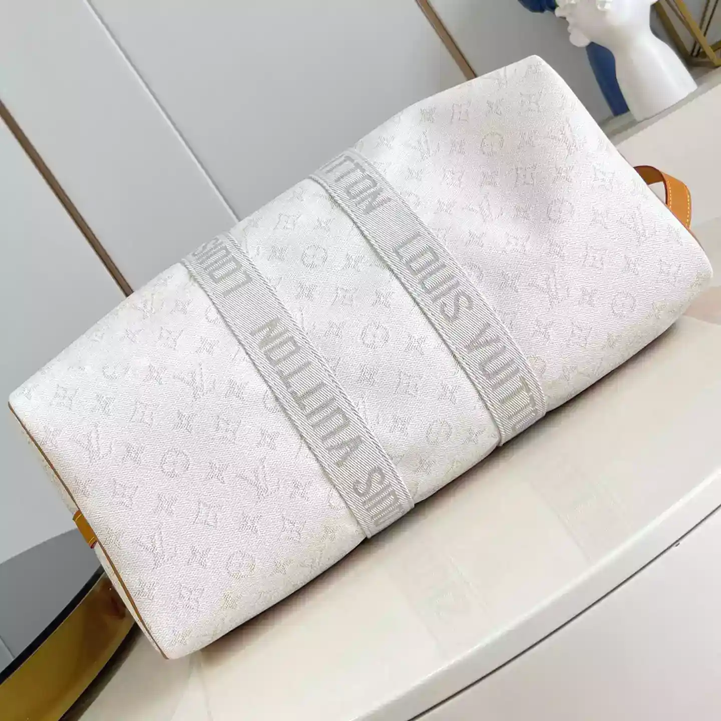Discover the perfect blend of style and practicality with the KEEPALL BANDOULIERE 45 BAG OFF-WHITE MONOGRAM HERITAGE CANVAS M14838